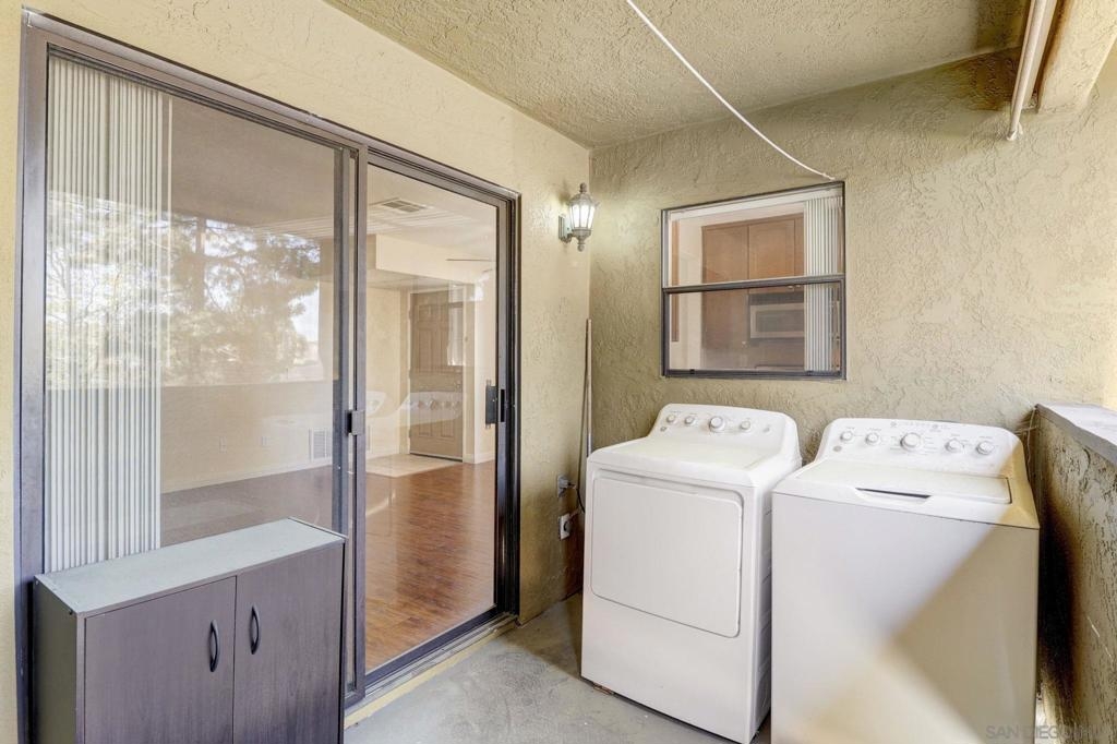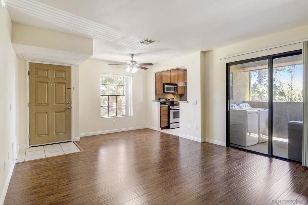 MOVE IN READY Top floor of a South-east facing "no hot afternoon sun" Mira Mesa 2-bed, 2 bath condo unit. Never rented, single resident, infrequent and very careful usage by single owner --Brand new fridge & new ac with with 20 yr warranty , never used.The spacious ensuites on opposite ends of the unit offer roommate capability and convenience. They come with large mirrored closets, private full bath and window. Kitchen offers stainless steel appliances, marble countertop, microwave, dishwasher, gas range, and a BRAND NEW never used fridge bought 7/23. Wood flooring in living/dining room & hallway has been lightly used and well protected. A BRAND NEW never used AC system with 20 yr warranty promises year-round comfort, while added ceiling fan enables good air circulation.. Top of the line Whirlpool washer installed next to the kitchen. A functional partial inclosed private balcony. added 7' x 11' useful living space. A 4' x 2' room there functions well as storage. 2 dedicated parking spaces. Residents enjoy a low rise 8 unit building in garden community which is safer from earthquake & fire than highrise. The complex offers a swimming pool, Gym and laundromat. Located in a desirable academic school system ranked very high in California! Within 5-10 min drive of Target, Vons,Grocery Outlet, Home Depot, restaurants and movies. 20 Min drive to UCSD SPECIAL. -- Newer wood floor, washer dryer, ceiling fan. First time home buyer and downpayment assistance programs available!