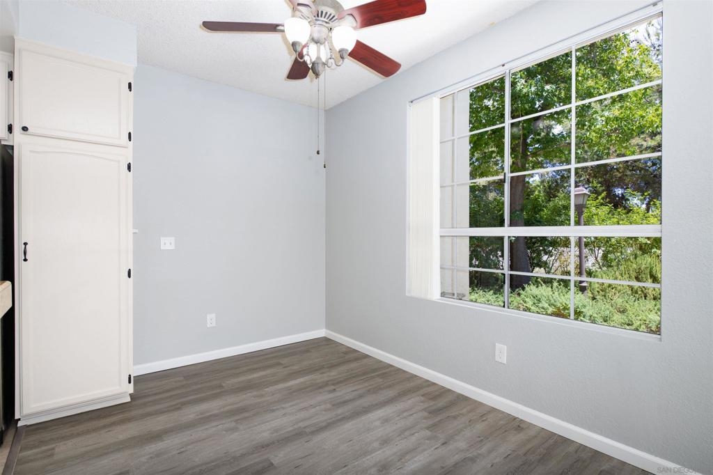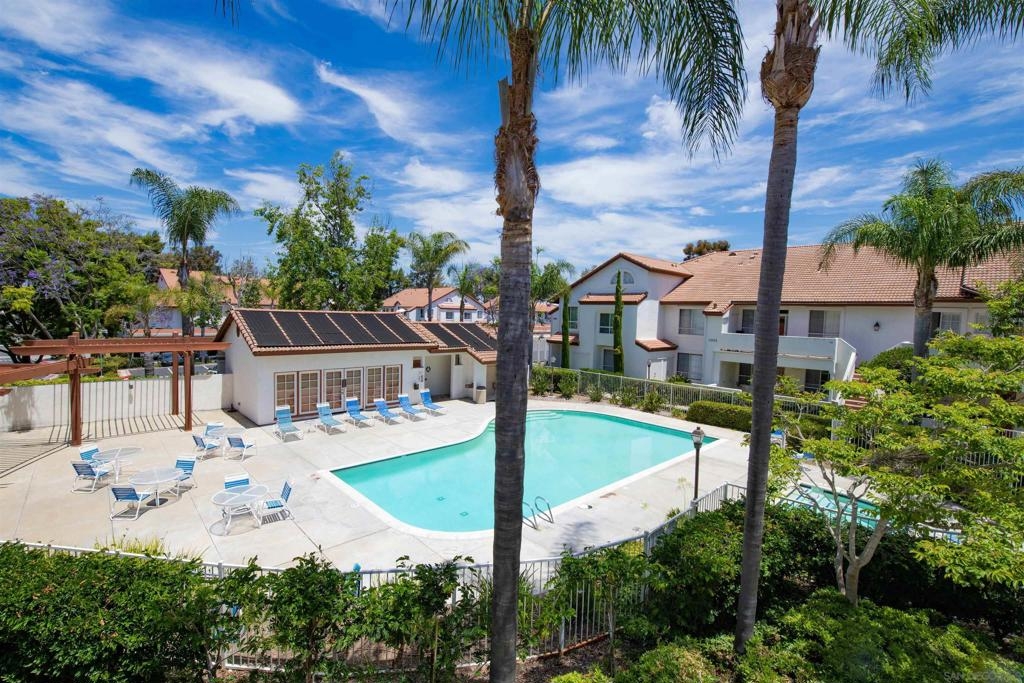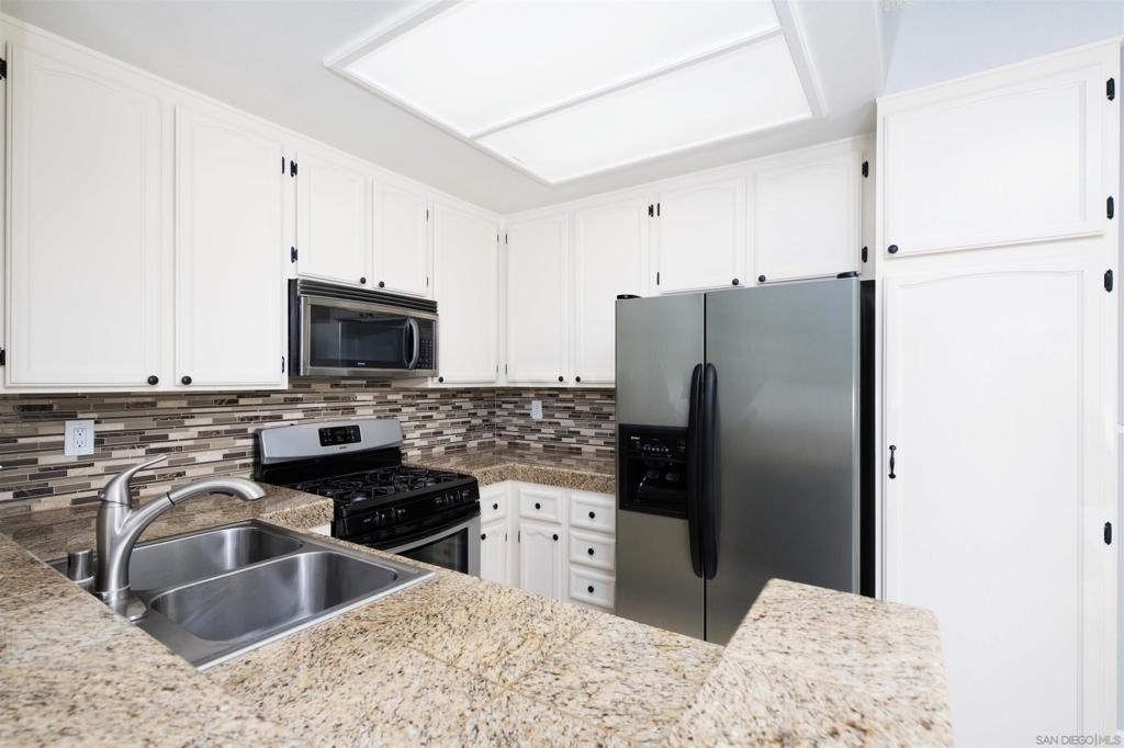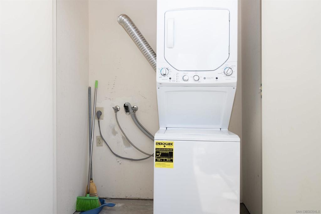 Light, bright lower level, end-unit condo with parklike views. Freshly painted with solid surface flooring. Features include an updated kitchen with gas range, almost new stacked washer and dryer, and refrigerator with ice maker. Excellent North Mira Mesa location in the Canyon Bluffs complex with nearby community pool and spa. Nearby parks, trails and bike lanes. One assigned covered parking space with storage above and plenty of open parking. Patio space with storage room and laundry area are a bonus. A must-see!