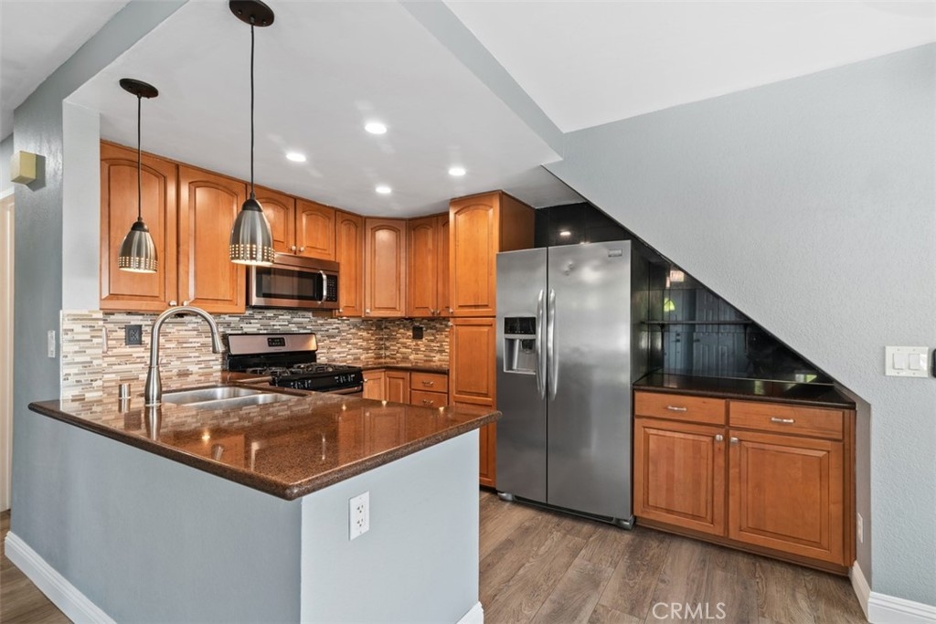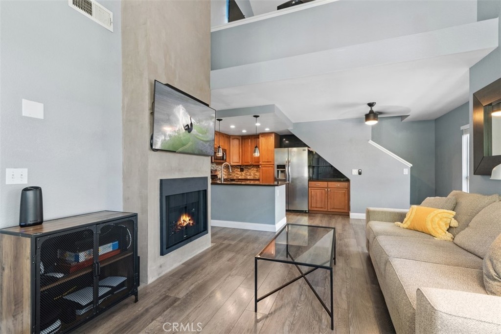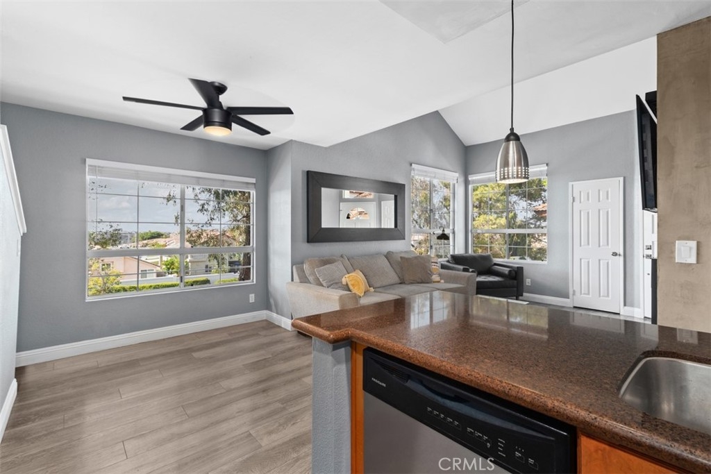 Welcome to this beautifully upgraded upstairs corner unit in the desirable Canyon Bluffs community of Mira Mesa, San Diego. This bright and airy 2-bedroom, 2-bathroom condo includes a spacious loft, vaulted ceilings, and abundant natural light. The upgraded kitchen features upgraded cabinetry, pendant lights, stainless steel appliances and granite countertops. The primary bedroom showcases a stylish wood accent wall. The living room fireplace has been refreshed with a contemporary/industrial look. Enjoy the convenience of a newer washer, dryer, and hot water heater, plus ample storage with a large attic, patio closet, and carport storage closet. Community amenities include a pool and spa, offering resort-style living in a prime location. Nearby you will find various hiking trails, restaurants and the 5 Freeway.