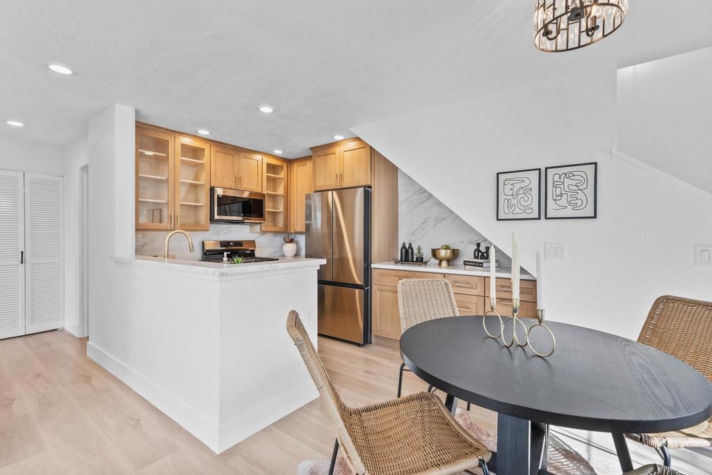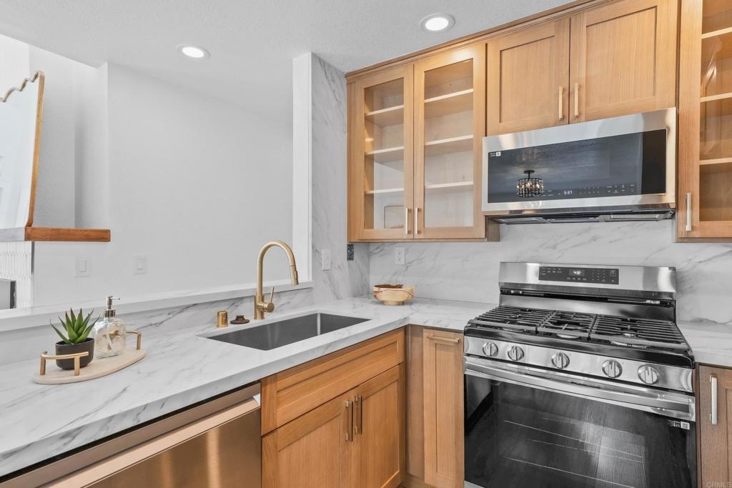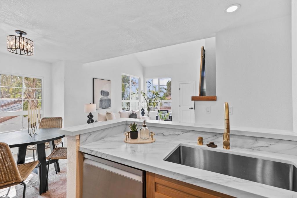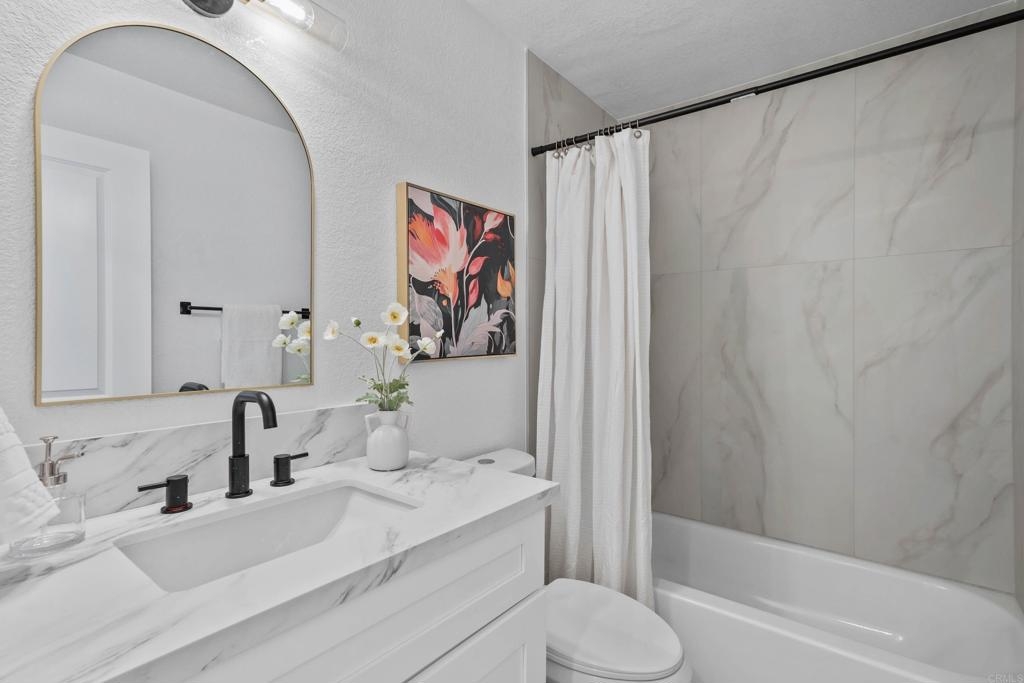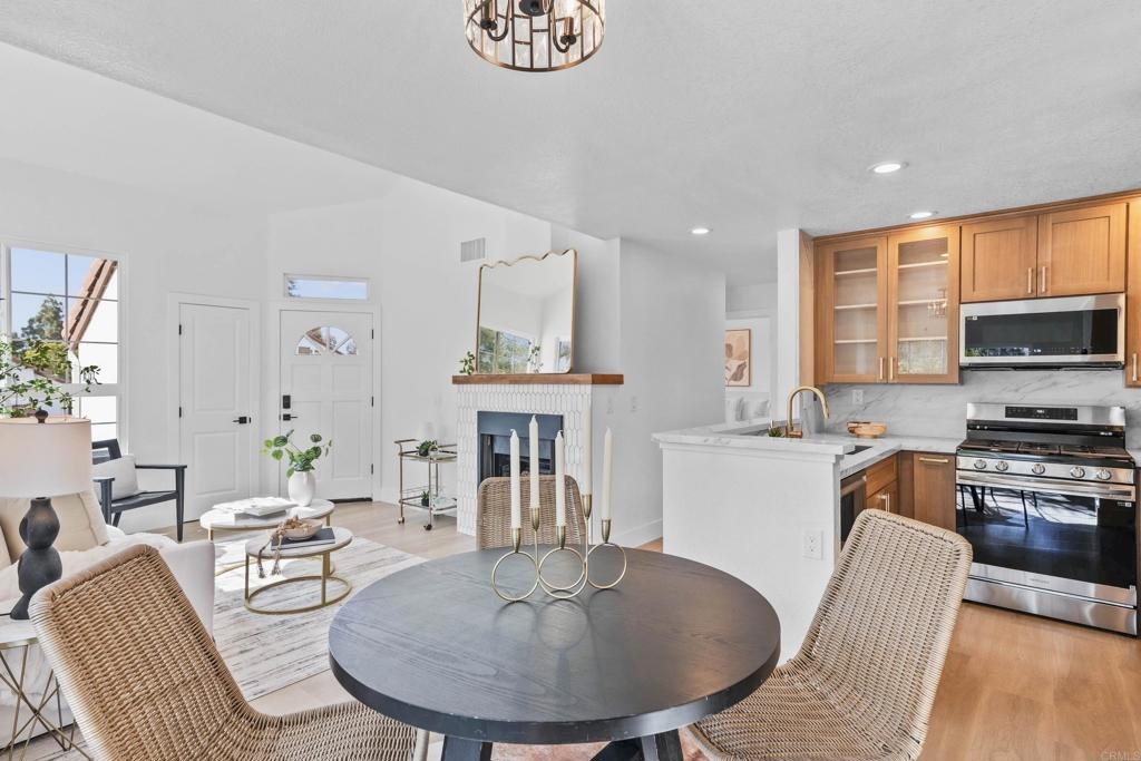 Seller will give a $5,000 closing cost credit with an acceptable offer!! Welcome to this luxuriously updated 2 bedroom + loft home in the highly desirable Canyon Bluffs community of Mira Mesa. Prime corner location with no building in front of the unit and views. Top floor gives you elevated ceilings for tons of space and light. Gourmet kitchen featuring high-end cabinetry, stainless steel appliances, quartz countertops, and dining area. Adjoining family room with cozy fireplace. Primary suite with gorgeous bathroom and spacious walk-in closet. Secondary bedroom and yet another gorgeous bathroom. Enjoy the extra space of the loft - great as an office, library, or enclose to make a bedroom. Canyon Bluffs is on the northern side of Mira Mesa, near great trails, parks, tons of shopping and restaurants, freeways, and more. Welcome home!