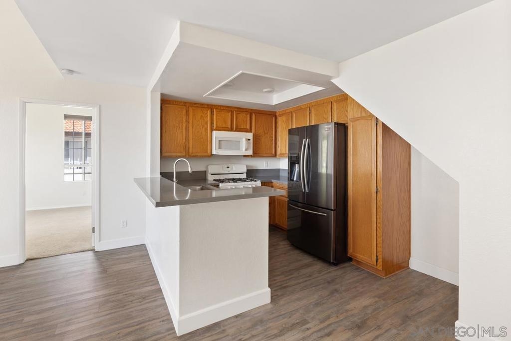 Hello! My name is 11565 Caminito La Bar #32 and you can just call me “home”. I sit at the very top of the Canyon Bluffs community in Mira Mesa and let me tell you, I’m one of a kind. No windows looking in on me, just sunshine, breezes, and open-air privacy you didn’t think was possible in a condo. Step inside and you’ll be greeted by my vaulted ceilings that soar with light and space. My open floor plan flows effortlessly, making every inch feel expansive and inviting. I’ve been thoughtfully updated with a fresh kitchen and modern bathrooms, plus I come with my very own washer and dryer because convenience matters. Upstairs I have a cozy loft retreat that can be your office, your creative den, your “just-me” escape; whatever you need. But I’m not just about what’s inside. I’m also minutes from the best of Mira Mesa. Top schools, hiking trails, restaurants, shops, and quick freeway access. It’s the perfect blend of peace and connection. If you’ve been waiting for a home that feels good, lives smart, and looks beautiful, I’m ready when you are. Schedule a tour soon because once buyers see me, I won’t be available for long.