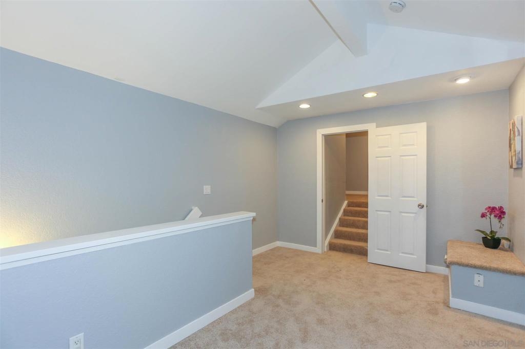 Fully upgraded quite, bright and airy upper unit in popular Canyon Bluffs complex in Sorrento Mesa location! Quartz countertop and newer Stainless Steel Appliances, Newer flooring, New washer and dryer. Perfect starter home or investment opportunity. Vaulted ceilings, fireplace, 2 bedrooms on entry level, Optional 3rd bedroom upstairs and additional loft area that makes a great office, play room, work out area. Unit has one assigned covered parking spot and plenty of street parking, complex features nice grassy quads and great pool area! HOA covers water and trash. Close to freeway/shopping. You will fall in love it. Complex Features: ,, Equipment: Washer Sewer: Public Sewer Topography: LL Frontage: Open Space