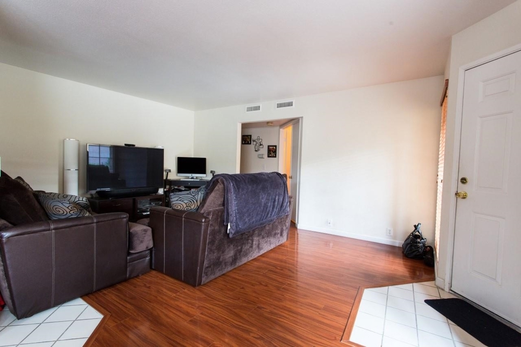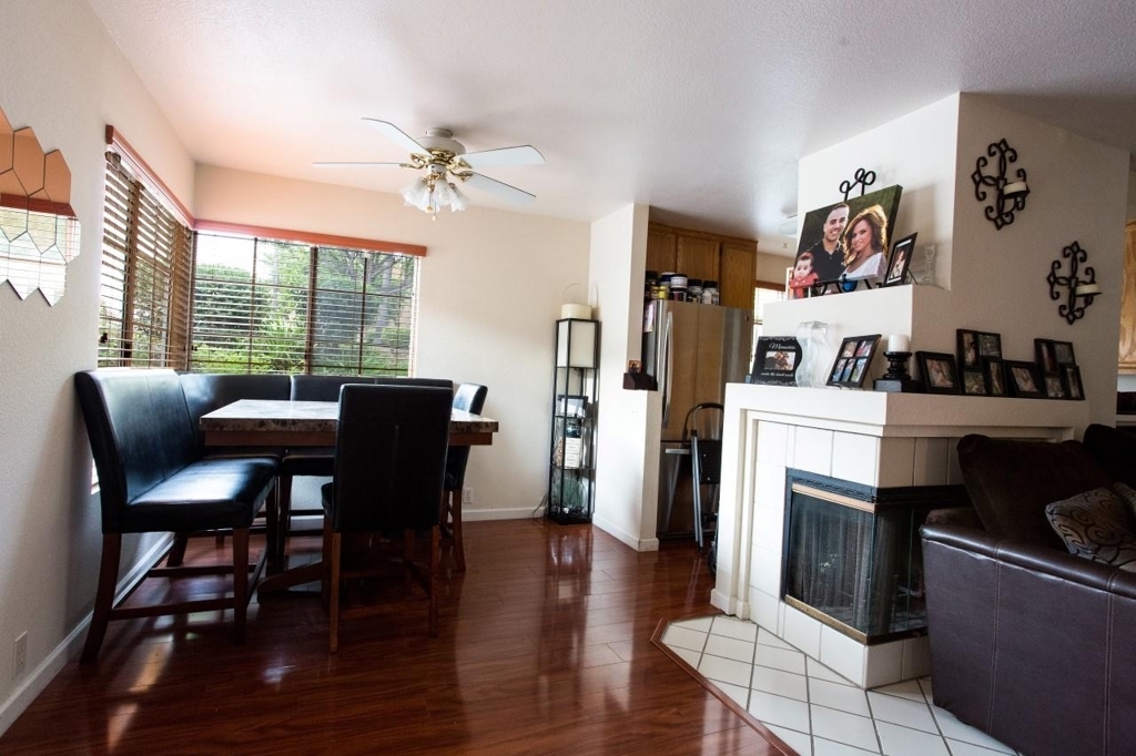 Turn-key condo with impeccable laminate floors, steel fridge, granite counter tops, and custom wood blinds. Double door entry to second bedroom can also be used as an office. Wrap around fireplace from living room to dining room. Enjoy designer touches throughout. This first floor unit offers a huge covered patio and great privacy for entertaining with family and friends. The complex features a very nice pool and spa, basketball court, volleyball court, and Lopez Canyon community park right next door. Neighborhoods: Canyon Park Equipment: Dryer, Range/Oven, Washer Other Fees: 0 Sewer: Sewer Connected