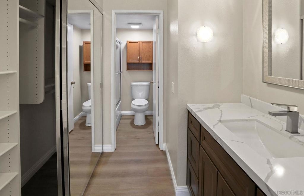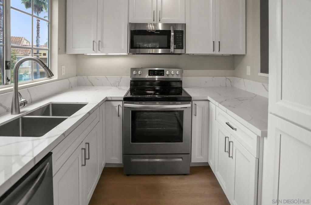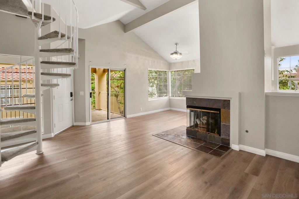 Beautiful 2 bedroom, 2 bathroom, upper level, single story plus loft in the community of Canyon Park Villas in San Diego! Enjoy elegant laminate wood flooring, an inviting fireplace, and a private view balcony. Spiral stairs lead to the upstairs loft. The kitchen offers stainless steel appliances, white cabinetry, and tile flooring. The primary bedroom features carpet flooring, mirrored closet doors, and a shower-in-tub in the primary bathroom. Additional property highlights include the balcony enclosed laundry hookups and assigned parking. Community amenities include swimming pools, spa, sport courts, and walking paths. Convenient to nearby schools, shopping plazas, and a short drive to area beaches! Equipment: Range/Oven Topography: LL