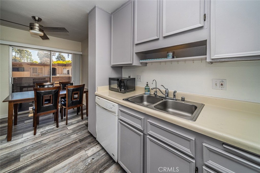 Welcome to Carroll Canyon Gardens a private and quiet location close to Mira Mesa! Close proximity to the shops, restaurants, Home Depot, Movie Theater, Hourglass park, Miramar College and easy access to 15 freeway. Charming updated upstairs condo with new interior paint, painted light grey kitchen cabinets to match new luxury laminate plank floors throughout. Three new luxury ceiling fans that compliment the floors, new blinds throughout, new light fixtures throughout, new shower door. Additionally, the home has 2 ASSIGNED PARKING SPACES, and the complex features a pool, spa, and BBQ area. Common area laundry facility. WATER, TRASH & SEWER INCLUDED IN HOA DUES.