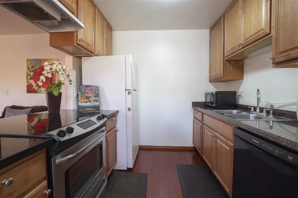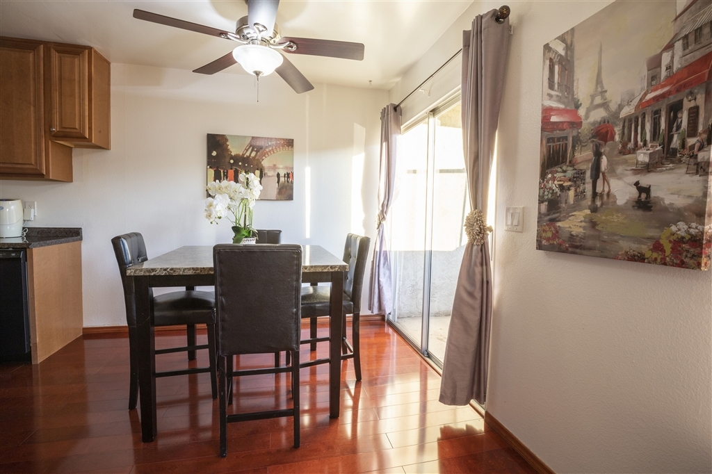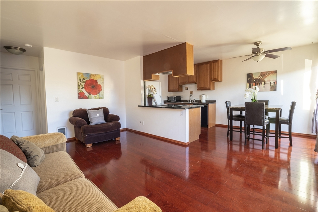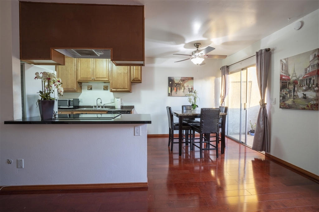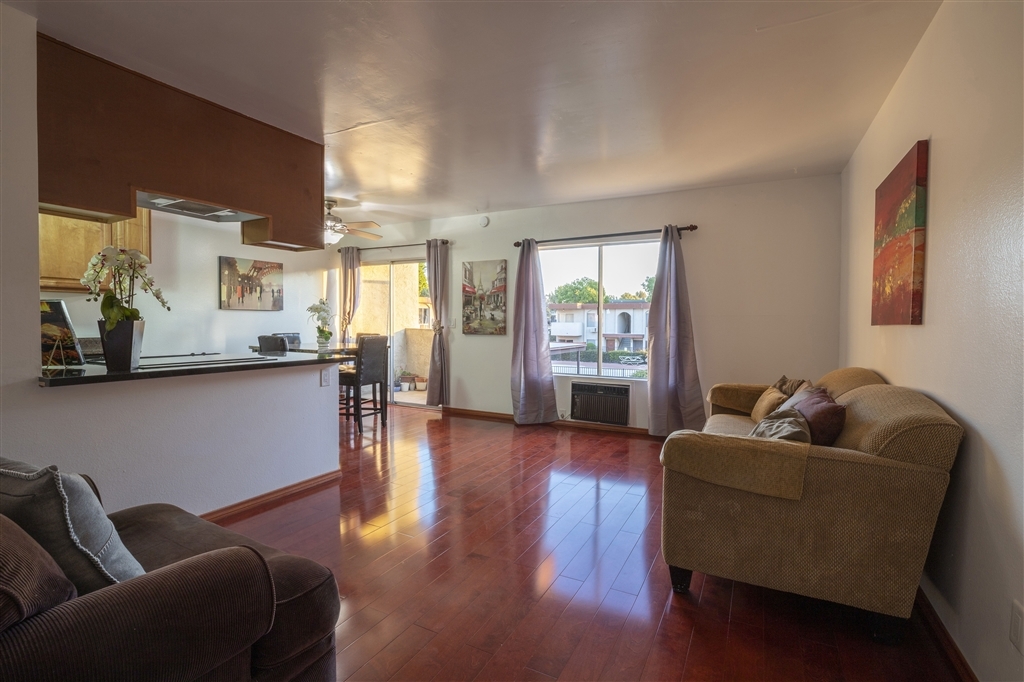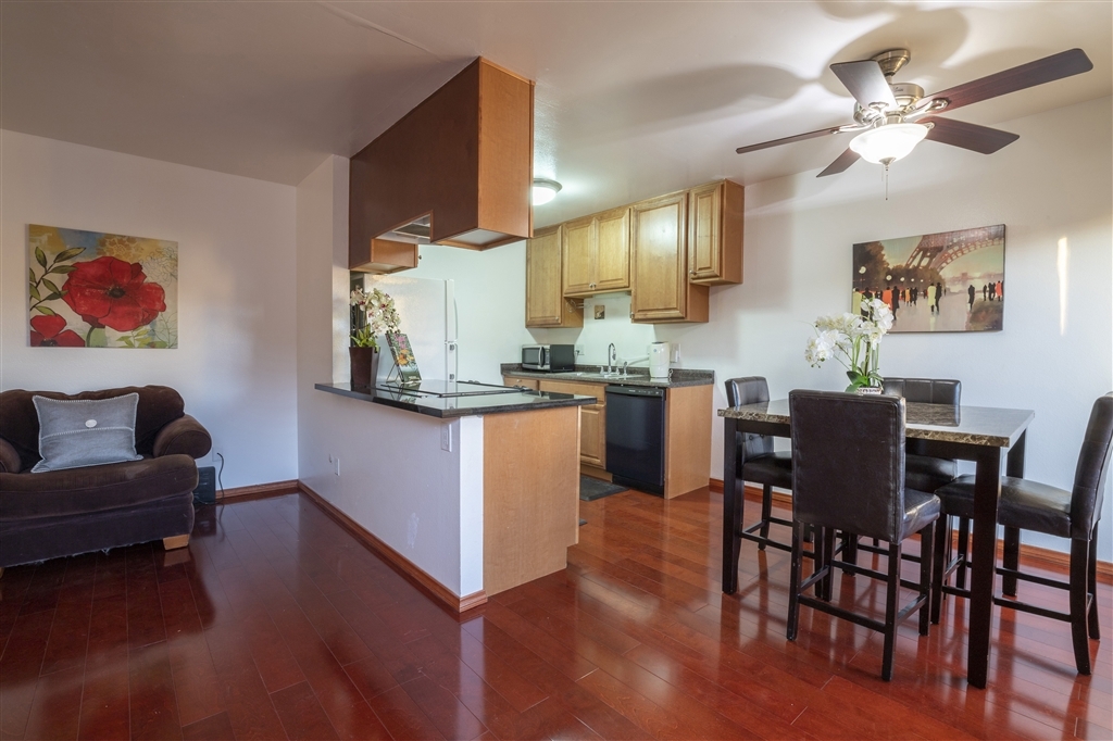 Why rent when you can own this top floor condo! Beautiful hardwood floors in living/dining/kitchen, new carpet in bedroom. Upgraded kitchen w/ granite countertops, newer cabinets, electric stove/oven & dishwasher. Upgraded bathroom w/ tile floors & newer sink & faucets. Dining room w/ ceiling fan & sliding glass door to the private balcony. Larger bedroom w/ huge closet/mirrored door. 2 swimming pool/spa & community laundry. Great location in Mira Mesa near shopping, dining, easy freeway access!. Neighborhoods: Mira Mesa Complex Features: ,,, Other Fees: 0 Sewer: Sewer Connected Topography: LL