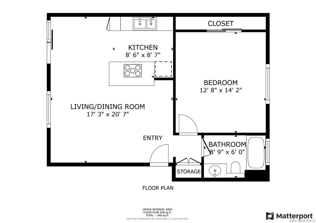 Top floor condo in the highly desirable community of Carroll Canyon Gardens. This home features an open floor plan with a living room balcony, a kitchen with crisp white cabinetry, a stainless steel stove and vent hood, and breakfast counter seating that opens to the living area. The nice-sized bedroom offers ample closet space. Enjoy a great location within the complex, close to the pool. This property is conveniently located near transportation, shopping, dining, Miramar College, and Hourglass Community Park. HOA amenities include a pool, spa, BBQ area, and laundry facilities. The condo comes with one assigned uncovered parking space and the complex is VA approved!