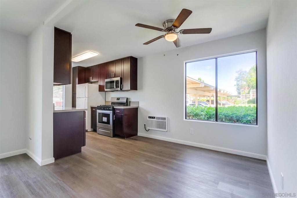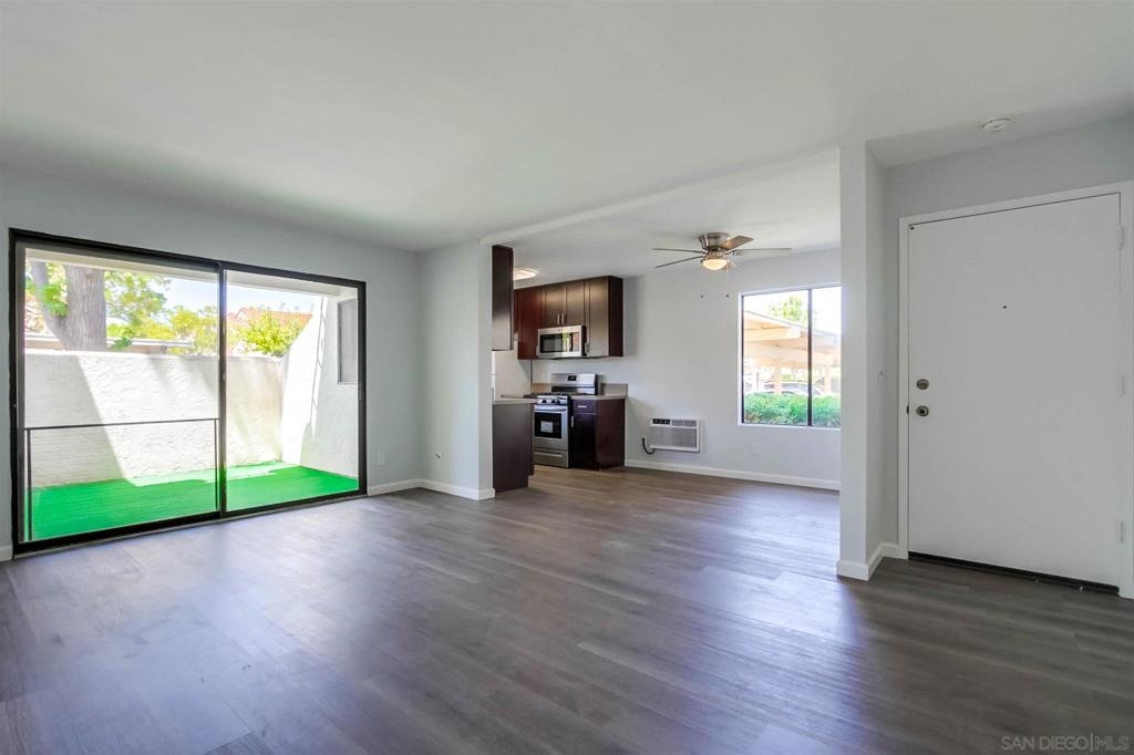Mira Mesa charmer awaits you! Open, bright & newly renovated. This home is a single level, bottom corner unit with a private backyard/patio. Centrally located within walking distance to shops and restaurants. Features include: remodeled kitchen to include stainless steel appliances, new vinyl flooring throughout, new interior paint, new baseboards, and much more! Equipment: Range/Oven, Washer Sewer: Sewer Connected Topography: LL