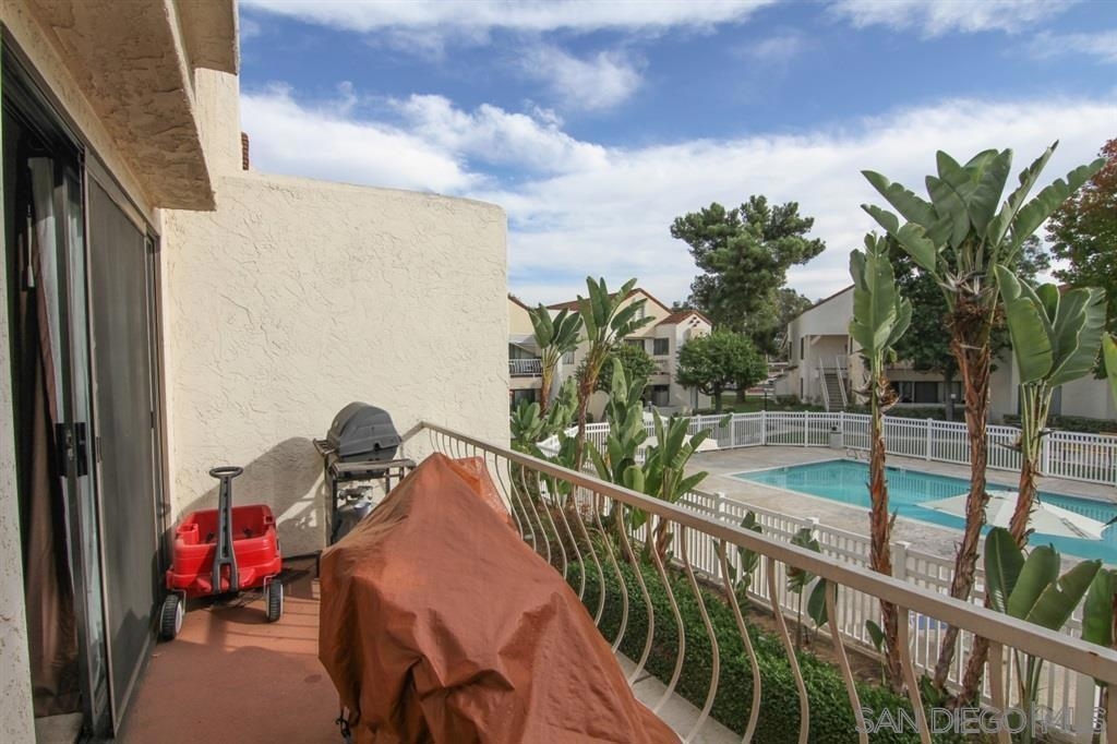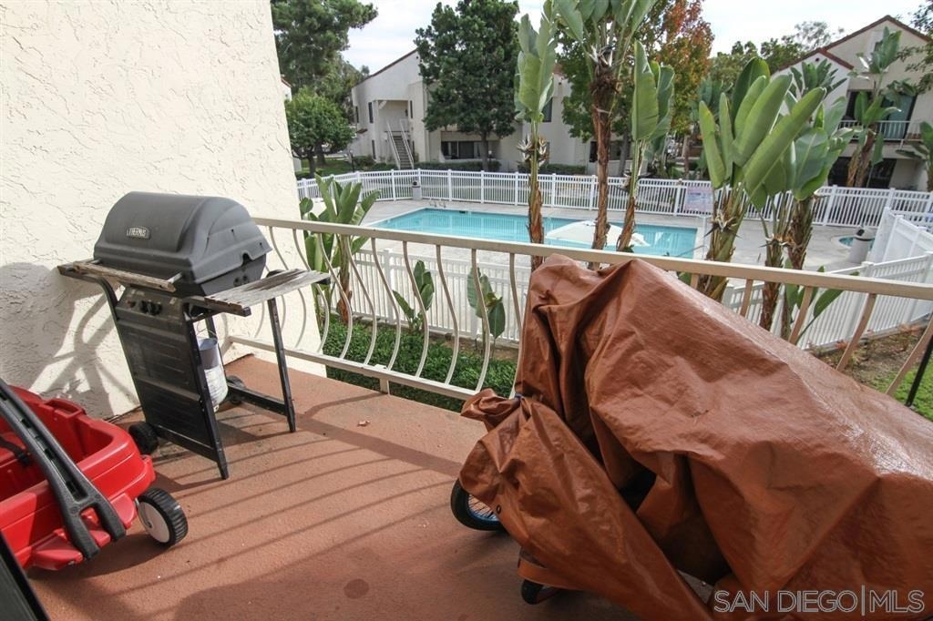 Spacious upper unit with pool view from balcony. One of the largest 1 bedroom units in Mira Mesa with extra large master bedroom and separate hall bathroom; Guests don't go through the bedroom to get t the bathroom! Nice and clean and move in, ready. Neutral plush carpets. Newer stacked washer and dryer. Centrally located and walking distance to Mira Mesa / Vons Shopping Mall. Walk to newly renovated kids park, rec center and The Mira Mesa Library. 1 covered parking space #201 Equipment: Dryer, Washer Sewer: Sewer Connected Topography: LL