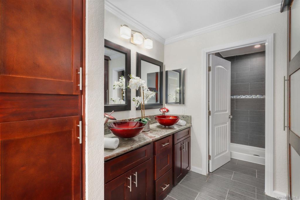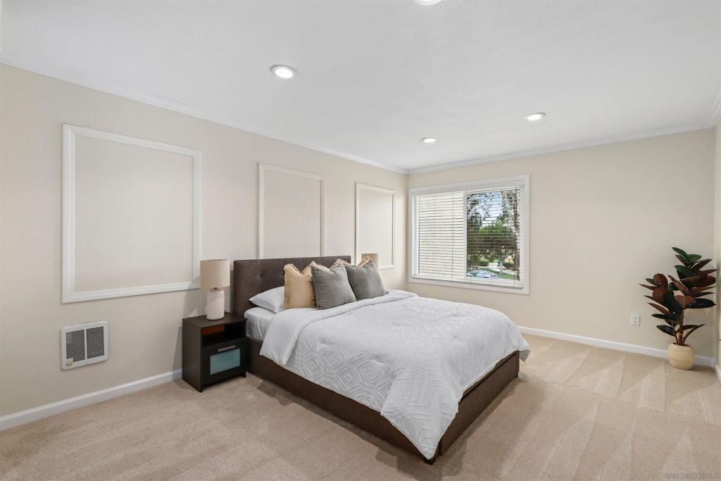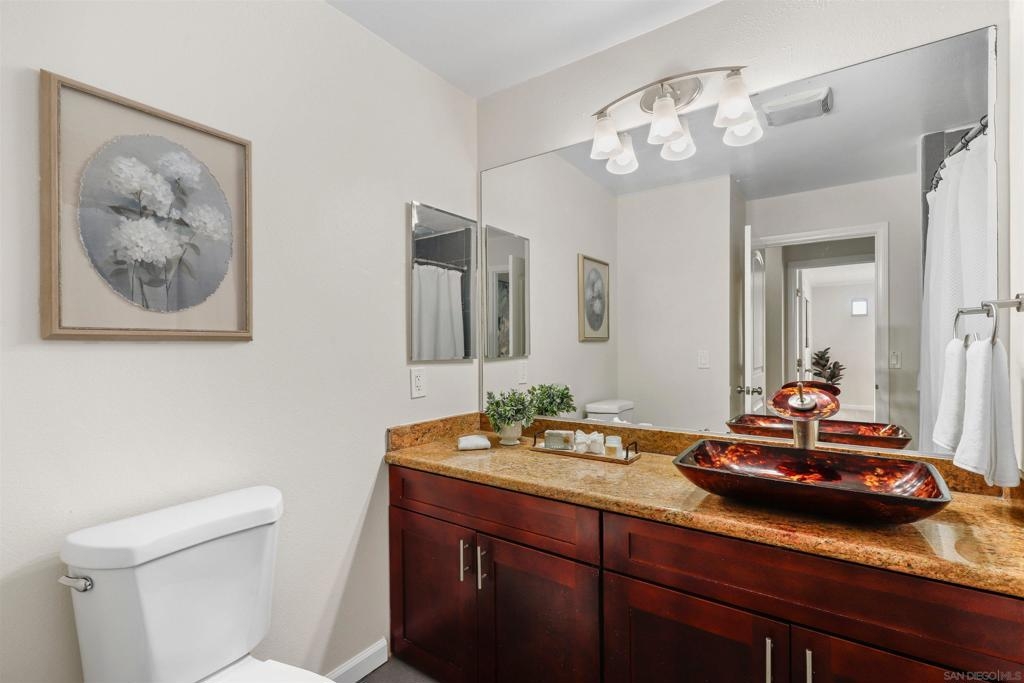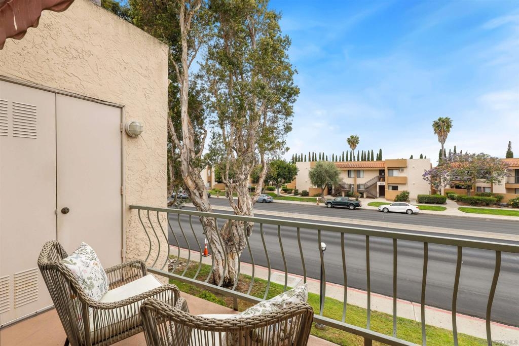No Special Assessments! Don't miss this beautifully upgraded upper-level 2 bed, 2 bath condo located in the heart of Mira Mesa! Whether you're a first-time homebuyer or savvy investor, this bright and airy end unit offers incredible value and endless potential. Enter to gaze upon a spacious, open floor plan. Enjoy thoughtful touches throughout, including recessed lighting, crown molding, and dual-pane windows. The remodeled kitchen boasts granite countertops accented by a mosaic tile backsplash, custom cabinetry, and stainless steel appliances, while the primary bath showcases dual vessel sinks and a custom vanity. The large primary bedroom and well-placed hall bathroom add to the desirable layout. A convenient washer/dryer closet on the balcony takes the chore out of laundry day. What sets this home apart is its exceptional location near a variety of everyday conveniences. It’s located close to shopping centers, Mira Mesa Community Park and its anticipated new Aquatic Center in 2026, daycare facilities, the local library, and more—making it easy to access many services and recreational options. Casa New Salem I also offers desirable community amenities, including a pool and hot tub. Located just minutes from major technology employers, offering a convenient location that can help reduce commute times and support a balanced daily routine. With a broad range of nearby resources and convenient access to major freeways, this property presents a great opportunity to live in one of San Diego’s well-connected and established neighborhoods.