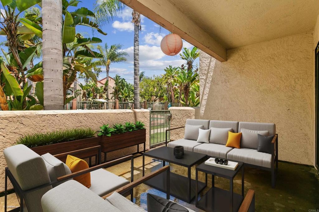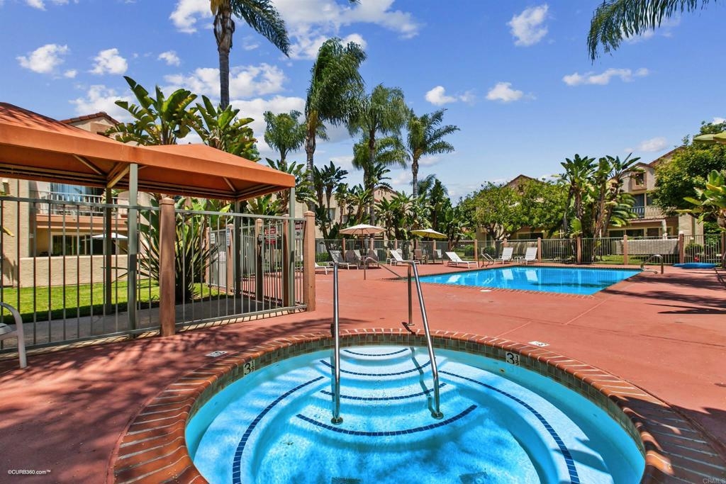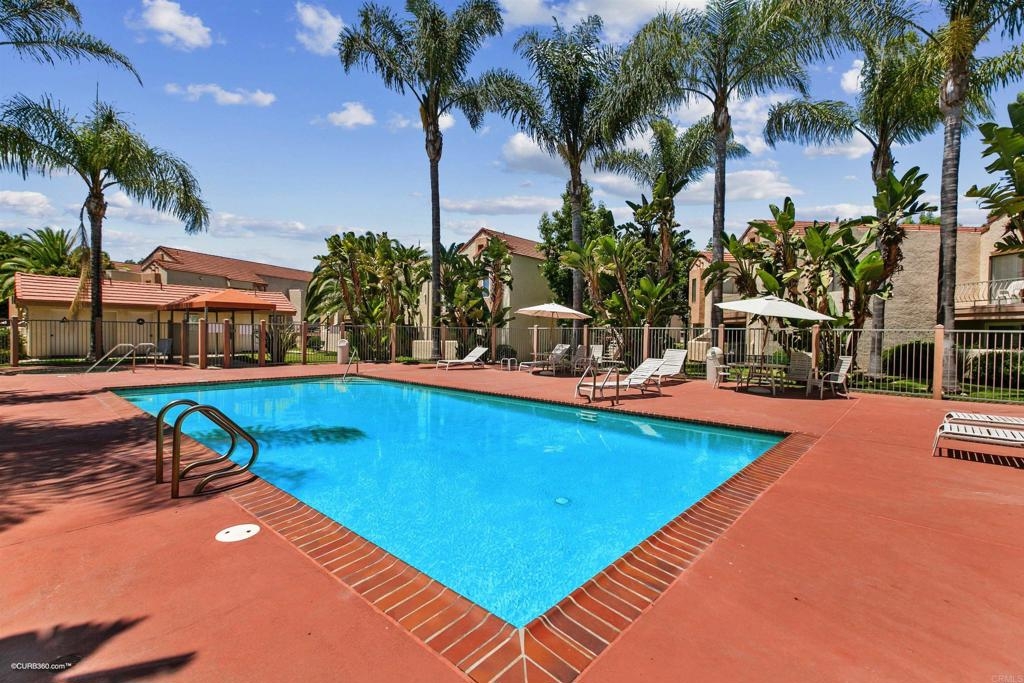 Experience the allure of this upgraded large 1-bedroom condo with patio nestled in the heart of Mira Mesa. Delight in the abundance of space and luxury amenities including a pristine pool and hot tub. Conveniently located near schools, grocery stores, parks, and freeways, this condo offers unparalleled accessibility. This home is ready for you to move in and make it uniquely yours. Step inside to discover freshly painted cabinets, granite counter tops, brand new stainless steel appliances in the kitchen. Brand new bathtub, and a brand new stylish vanity set with a light up mirror in the bathroom. Luxurious touches abound with new luxury vinyl flooring in the bedroom and elegant ceramic tiles throughout the main areas. Your convenience is ensured with the inclusion of a washer and dryer. Savor your mornings and evenings on the patio amidst lush tropical landscaping, creating an oasis-like ambiance that evokes a perpetual vacation vibe. Virtual staging offers a glimpse into the potential of this remarkable space. Don't miss the opportunity to make this condo your own slice of paradise. Whether you're a first-time buyer, downsizing, or seeking a smart investment opportunity, this condo is a perfect fit. Elevate your lifestyle in this turnkey condo that seamlessly combines comfort and sophistication.