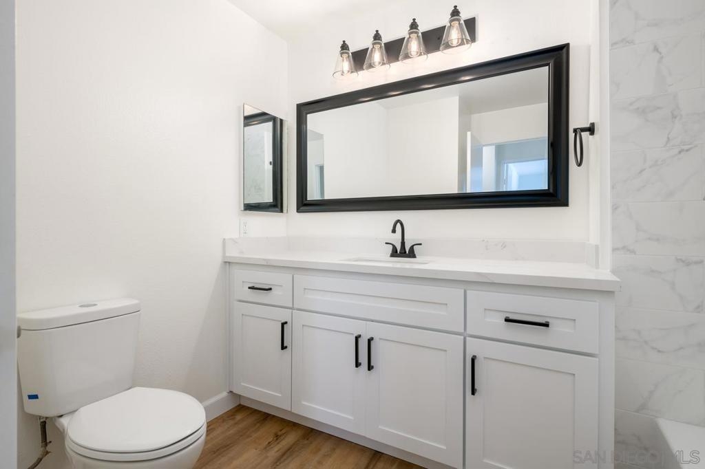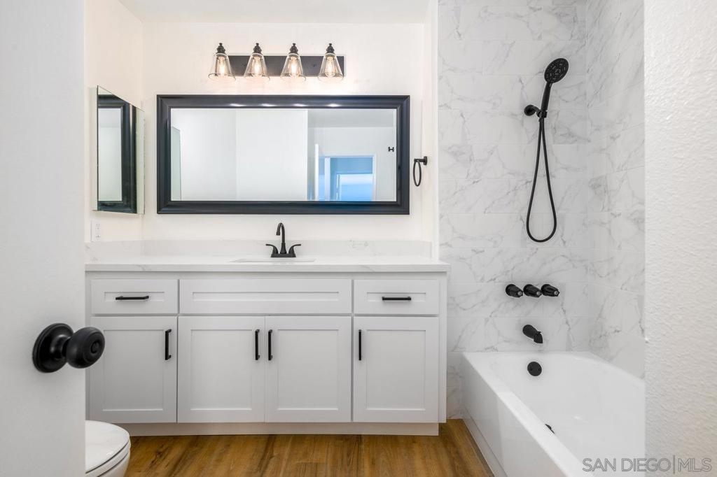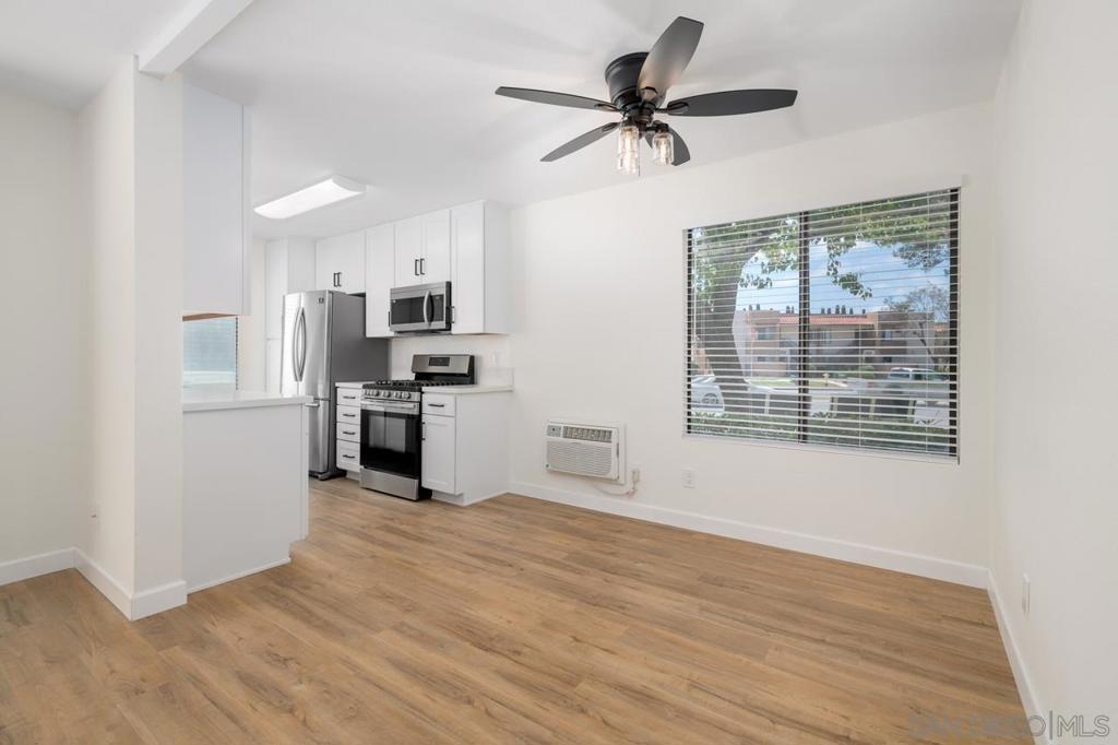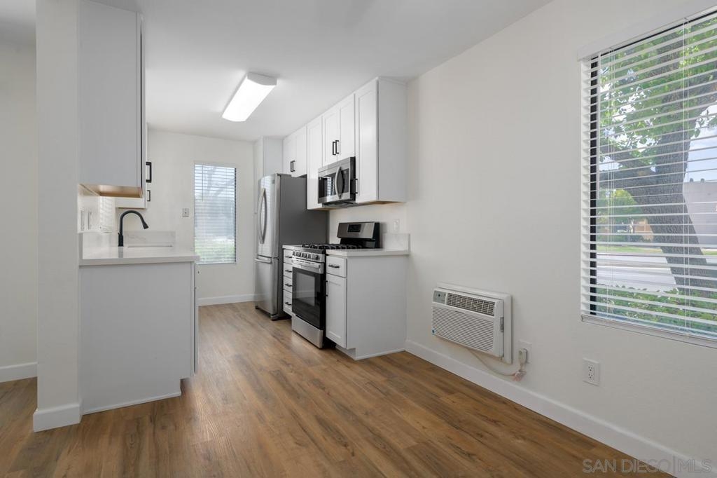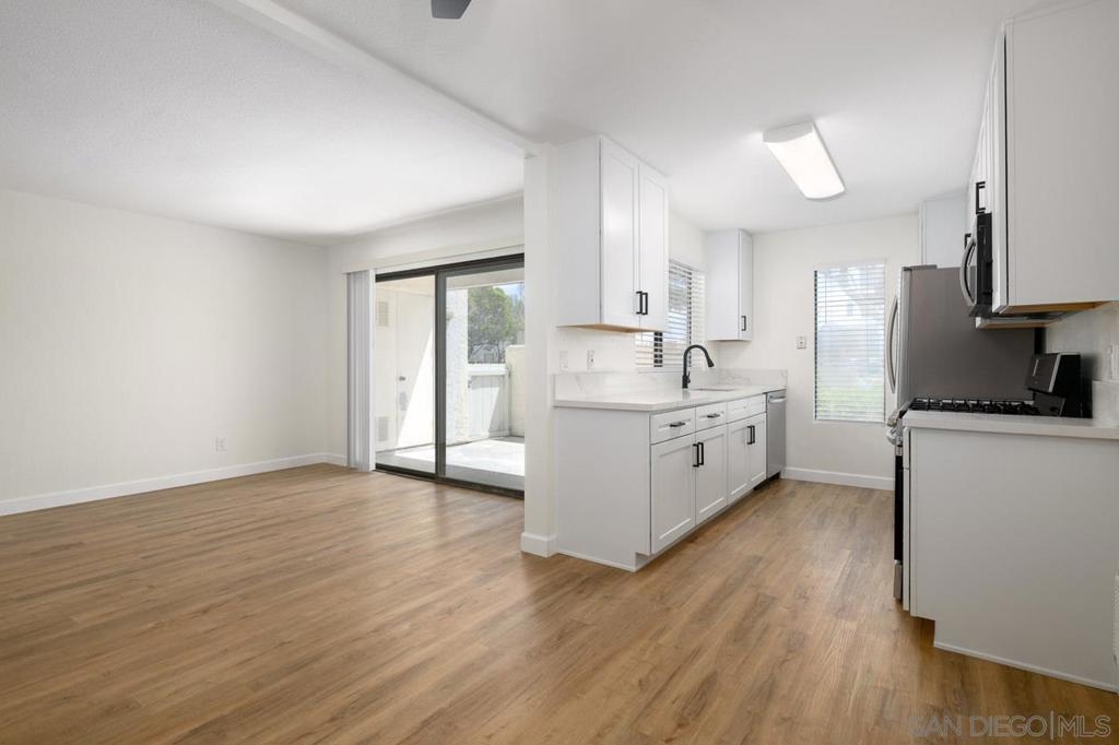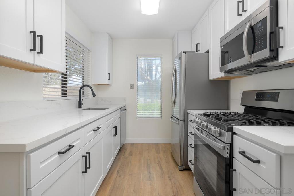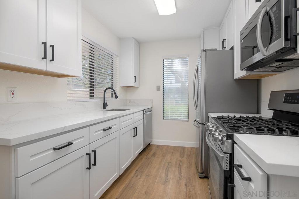 Fully remodeled condo located in the heart of Mira Mesa. Recently renovated throughout with new luxury wide vinyl plank flooring, quartz counters, stainless steel appliances, modern fixtures, designer tile in the bathrooms, and much more. Enjoy your own private patio with a washer/dryer closet. The complex includes a community pool and spa. Prime location near restaurants, shopping centers, parks, and easy access to freeways.