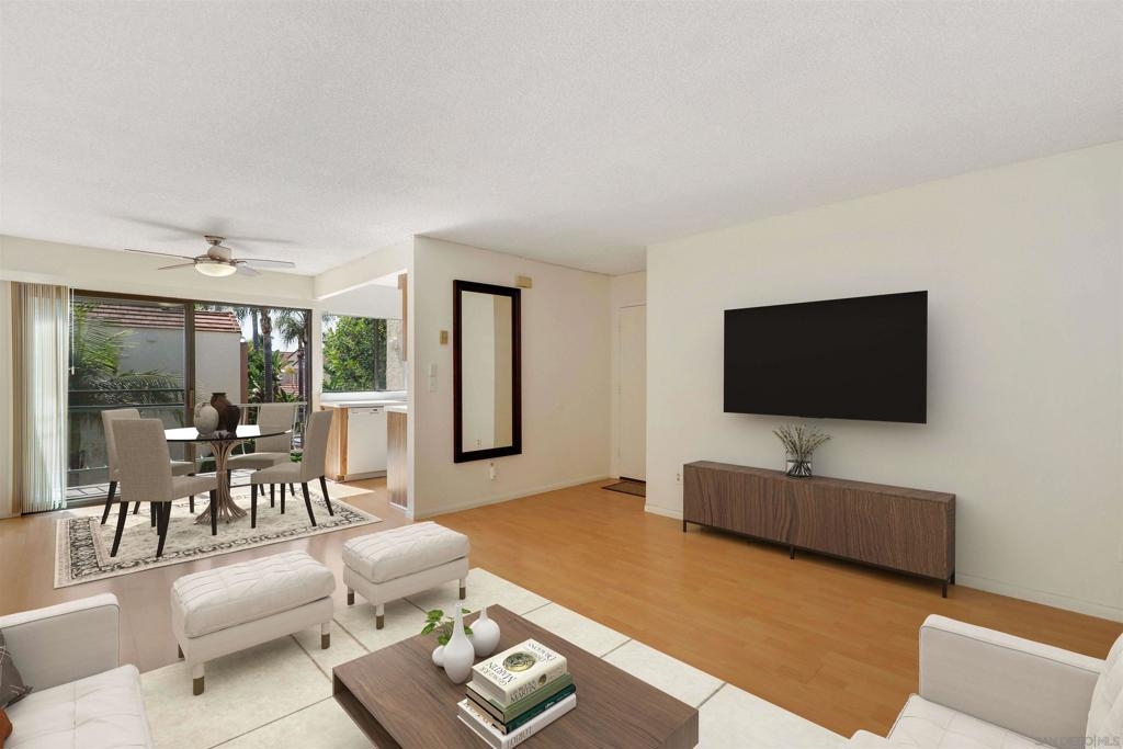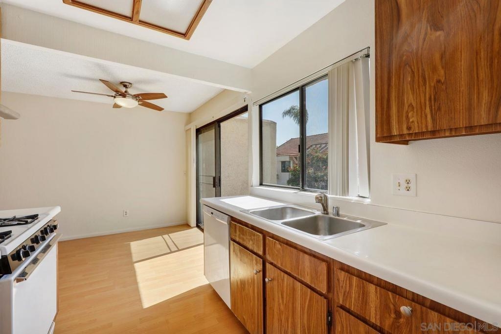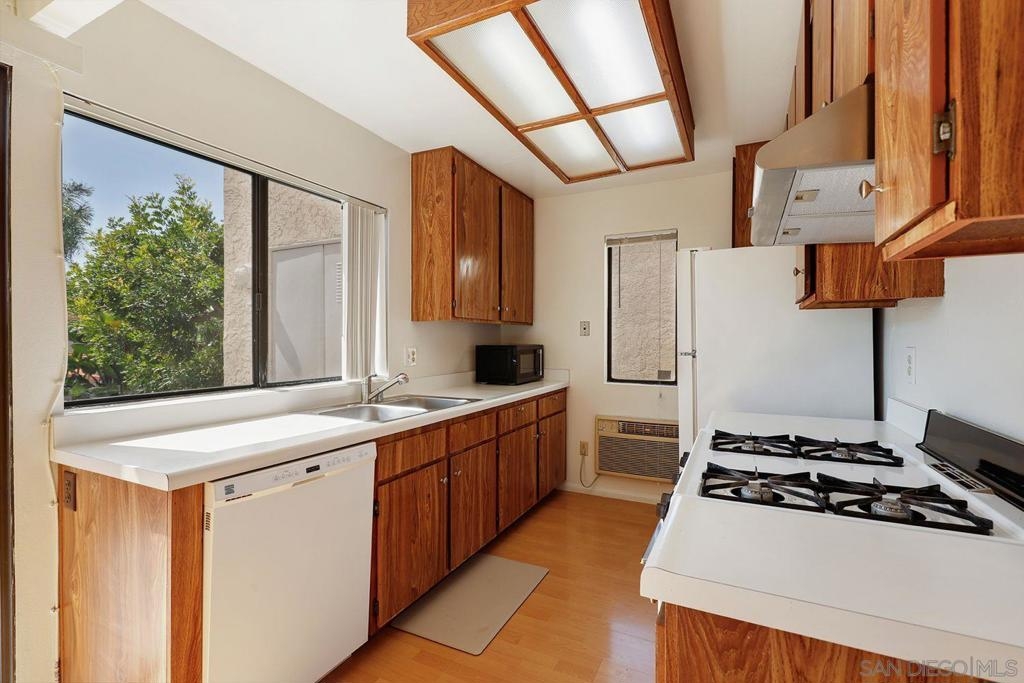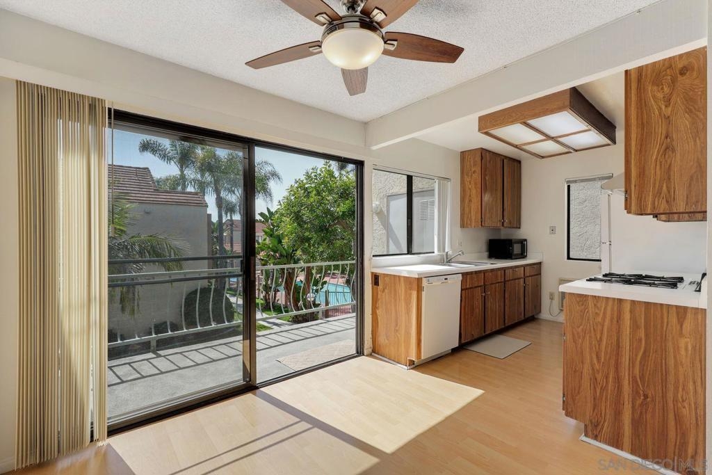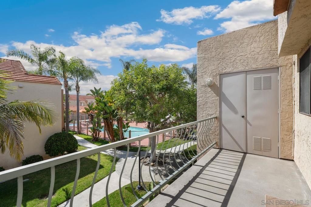 This top floor unit offers a perfect blend of comfort and convenience. Situated in a premier location with views of the pool, revel in the peace of no neighbors above, allowing for serene living with abundant natural light streaming in through every window. Your private balcony from the living room offers a tranquil retreat, perfect for morning coffees or unwinding after a long day. Updates include a brand new bathtub and tile work, and new range hood in the kitchen. With 2 assigned parking spaces, parking headaches are a thing of the past, ensuring both ease and accessibility.This well-maintained community boasts a refreshing pool and spa, inviting you to relax and rejuvenate in style. Say goodbye to the hassle of utility management as the HOA covers water and trash, simplifying your lifestyle. Seize the opportunity to make this delightful home your own!
