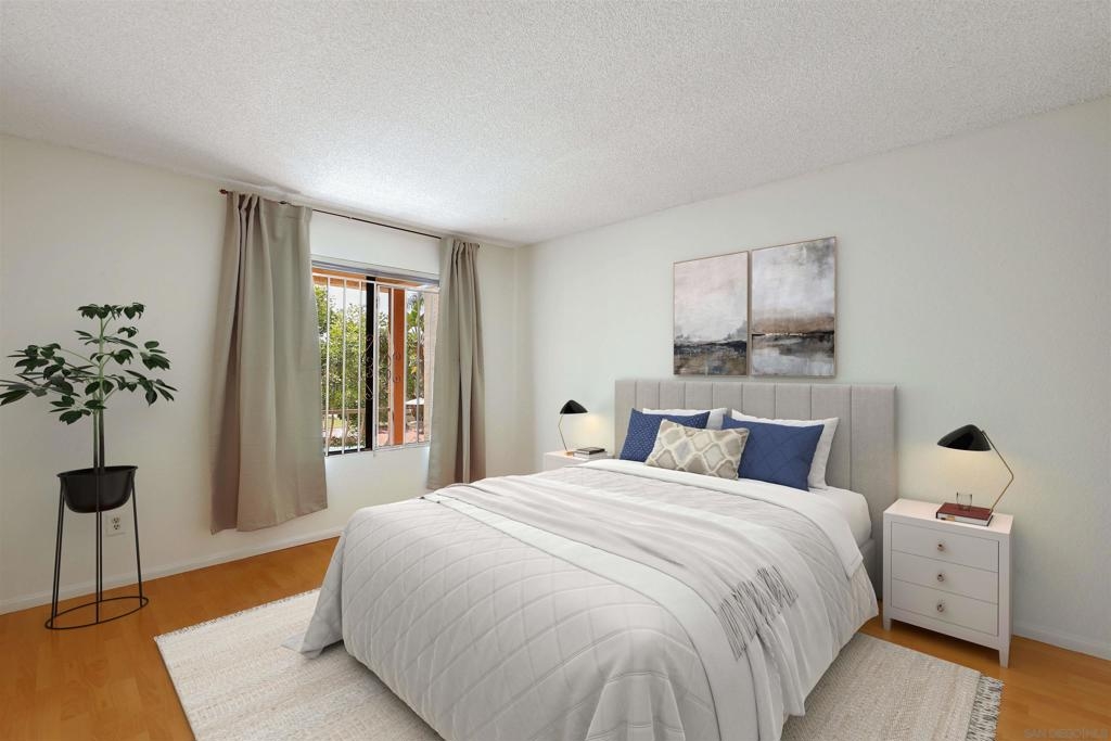 This top floor unit offers a perfect blend of comfort and convenience. Situated in a premier location with views of the pool, revel in the peace of no neighbors above, allowing for serene living with abundant natural light streaming in through every window. Your private balcony from the living room offers a tranquil retreat, perfect for morning coffees or unwinding after a long day. Updates include a brand new bathtub and tile work, and new range hood in the kitchen. With 2 assigned parking spaces, parking headaches are a thing of the past, ensuring both ease and accessibility.This well-maintained community boasts a refreshing pool and spa, inviting you to relax and rejuvenate in style. Say goodbye to the hassle of utility management as the HOA covers water and trash, simplifying your lifestyle. Seize the opportunity to make this delightful home your own!
