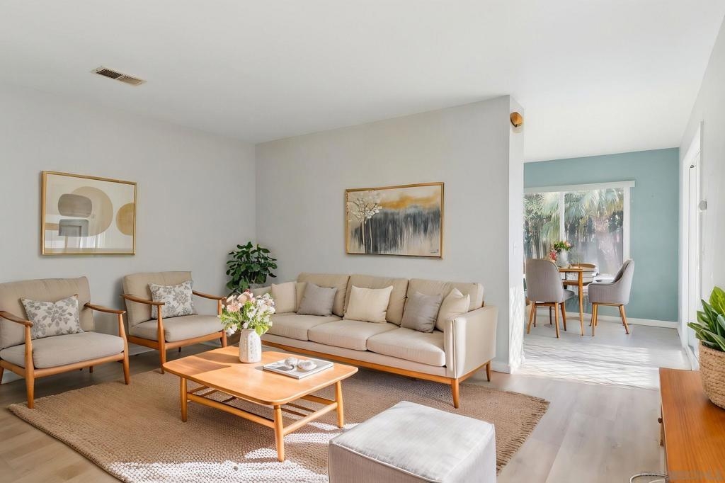 Welcome to 10983 Via Abaca, a charming 3-bedroom, 2-bathroom twin home in the desirable Colony Homes subdivision of Mira Mesa. This single-story property offers 1,010 sq. ft. of thoughtfully designed living space. Recently updated, the home features fresh interior paint and new upgraded flooring, creating a modern and inviting atmosphere. The bathrooms have been beautifully upgraded, with one featuring a luxurious Jacuzzi tub for ultimate relaxation. The bright and airy kitchen includes sleek countertops, an updated backsplash, and ample cabinet space. Enjoy the convenience of an in-unit washer and dryer, along with a single-car garage and additional carport for extra parking. Step outside into the expansive private backyard, an ideal space for entertaining or unwinding amidst lush landscaping. Located close to local parks, the Mira Mesa Rec Center, shopping, and popular dining spots, this home offers the best of both convenience and lifestyle. With very low HOA fees, this property is a rare find in an excellent location.