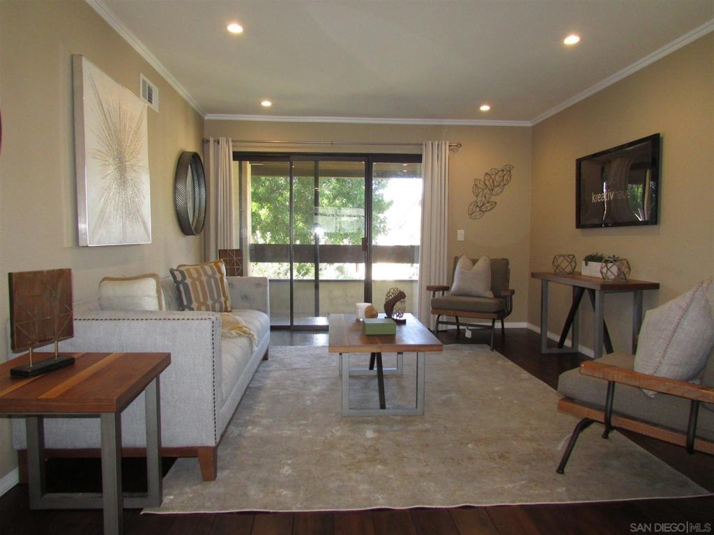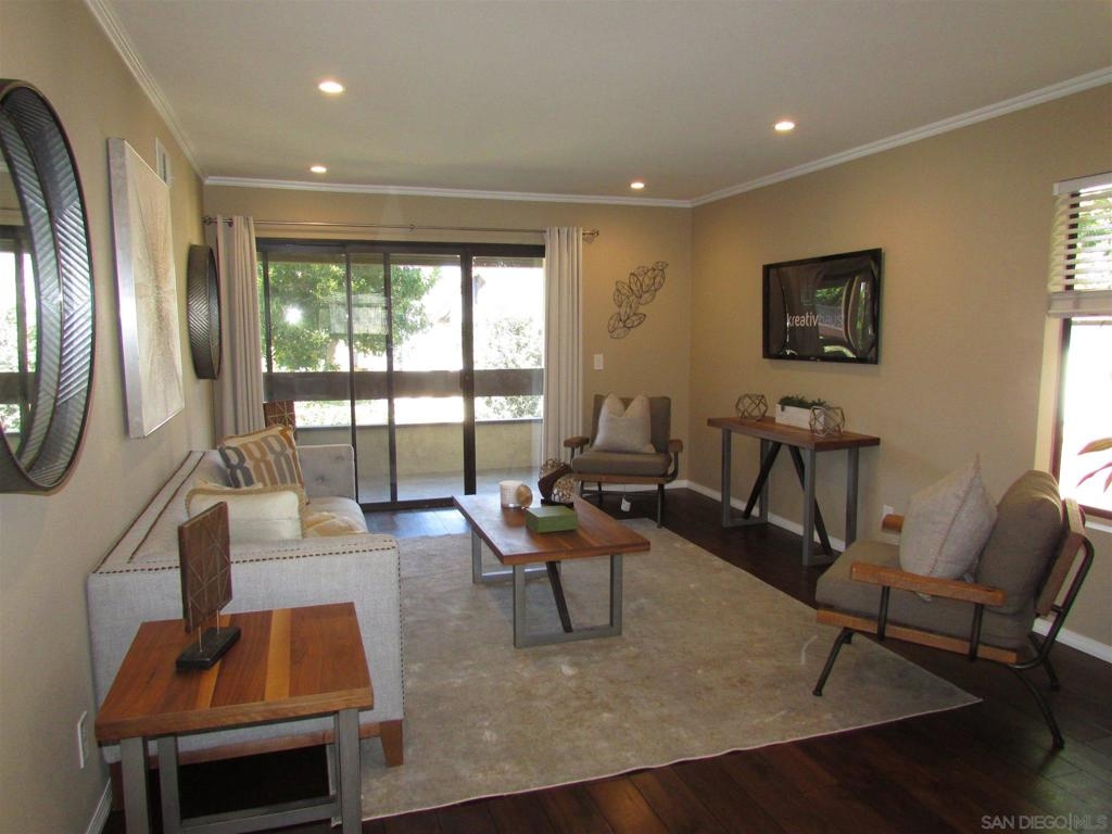 Highly Sought after 2 bed, 2 bath upper end unit in Concord Square! This unit has been remodeled and features wood floors and travertine tiled floors throughout. Newer light and bright kitchen with gas stove and kitchen island with plenty of storage! Full Size Washer & dryer in laundry room too! Two full baths have travertine shower tub enclosures Awesome location with full size patio overlooking the pool and spa area. This unit has a covered parking space and one uncovered too! Don't miss this GEM! Covered parking, close to all shopping, restaurants and transportation. Walking distance to Mira Mesa rec center and new near by park with lots of green. Buyer and Buyers Agent to complete all investigations and verify all necessary information to satisfy concerns and verify all MLS info prior to COE. Equipment: Dryer, Washer Sewer: Sewer Connected, Public Sewer Topography: LL
