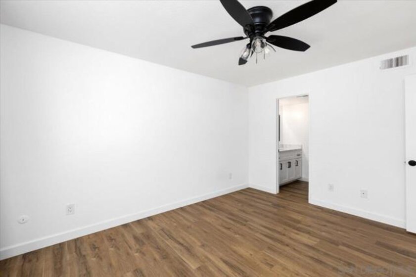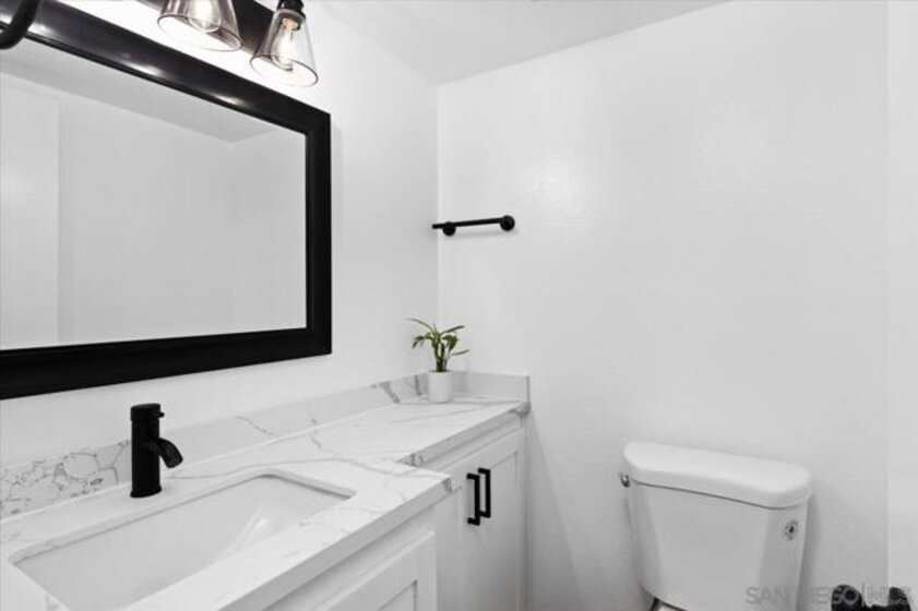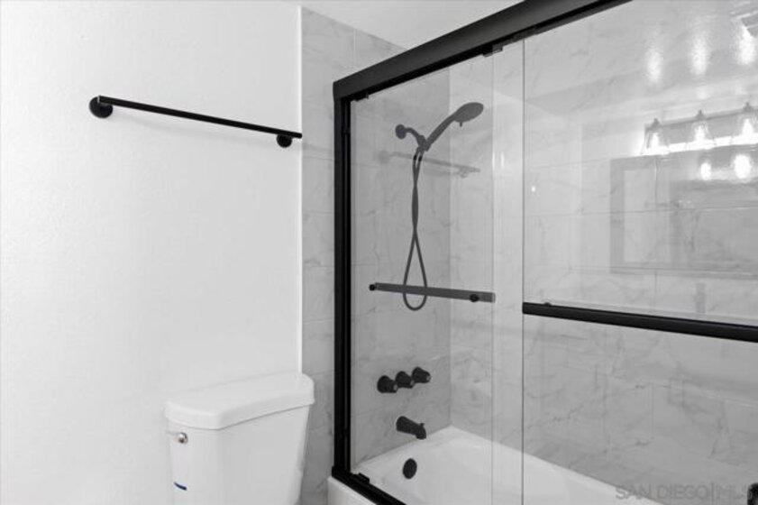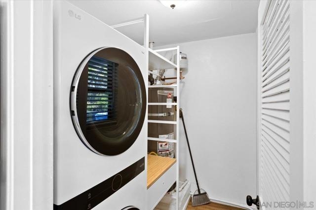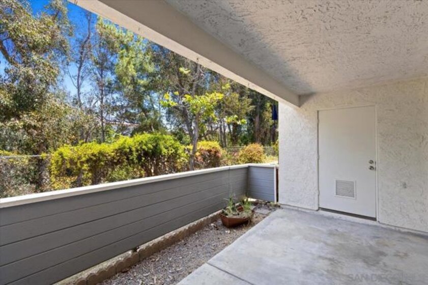 Price reduced!! Fully renovated 2-bedroom, single-level end unit home in a tranquil, parklike community with lush landscaping in the heart of Mira Mesa! This beautiful lower-level condo has no stairs and a large enclosed, private patio accessible through sliding glass doors. Step right out of the patio (through a convenient gate) or the front door to manicured lawns. Light & bright, this unit is completely upgraded & features newer LVP flooring, custom light fixtures, newer ceiling fans, a remodeled kitchen, updated bathrooms, a reconfigured interior laundry/utility closet, & AC. The kitchen is gorgeous with stainless steel appliances, quartz counters, & crisp white cabinetry. Lots of storage (including cabinets on both sides of the island, and an exterior closet next to the patio) & a great flow from the kitchen to the dining and living areas maximize the space. Both bedrooms are generous with exceptionally large and very tall closets. The primary bedroom is an ensuite with a beautiful spa-like bath featuring quartz counters, modern black fixtures, white cabinets, & a newer shower/tub combo. The half bath is also updated & accessible from the hallway. Continued in Supplemental Remarks... Laundry room off the kitchen with a full-sized stacked washer and dryer is a rare find in a condo community like this! A big coat closet in the entryway & exterior closet on the patio provide extra storage options. One covered parking space is included (#200). Residents enjoy access to the community pool, spa, & green spaces. Close to tons of restaurants, shops, & parks. Mira Mesa hosts wonderful annual community events that are just a short walk or drive away from this unit! A central San Diego location that is convenient to all! Don't miss this turnkey unit that is ideal for a primary residence or investment property in a robust & thriving community!