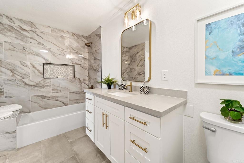 This stunning 2nd-floor condo has undergone a complete remodel, offering you contemporary elegance and comfort. Step inside to discover a space adorned with sleek quartz counters in both the kitchen and bathrooms, adding a touch of luxury to your everyday routine. Situated perfectly in the heart of Mira Mesa, this home boasts convenience at every turn. Whether you're craving a night out at one of the nearby restaurants, looking to indulge in some retail therapy at the shopping centers, or seeking easy access to the freeway for your daily commute, this location has you covered. For families, the proximity to schools ensures that education is always within reach. And with the Mira Mesa Community Park just a short walk away, enjoy endless opportunities for outdoor recreation and relaxation right at your doorstep. Don't miss out on the chance to make this meticulously remodeled condo your own, where convenience meets style in the vibrant community of Mira Mesa. Schedule your viewing today and envision yourself living the California dream in this desirable home.