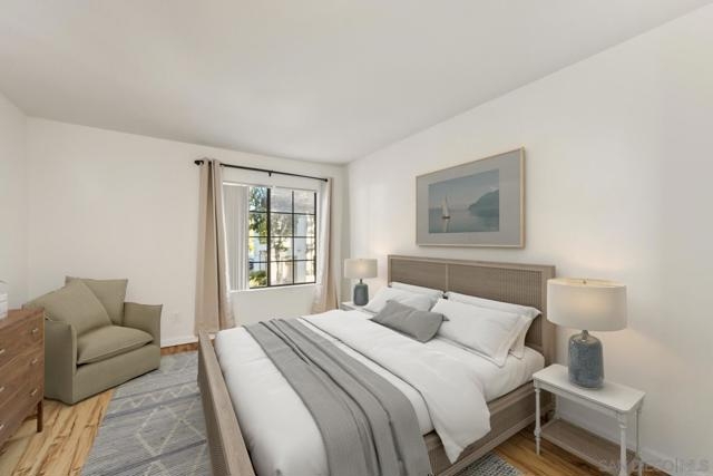 Bright & Open 1-Bedroom Unit with Private Deck – Prime Location! Welcome to this well-maintained and spacious one-level 1-bedroom unit, ideally situated in a quiet, private garden setting. Located on the second story with no neighbors above, this home offers the right blend of comfort and privacy. Enter to an open and airy layout, enhanced by beautiful hardwood floors and custom paint throughout. The popcorn ceiling has been removed, giving the space a modern, refreshed feel. Enjoy your morning coffee or unwind in the evening on your private deck, where you'll also find a full-size stacked washer and dryer tucked conveniently in the laundry closet. A short distance to local shops, restaurants, and amenities—making it the right choice for those who value both convenience and tranquility.