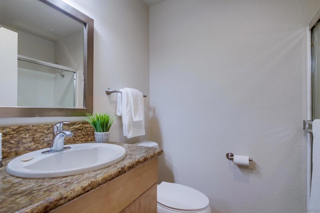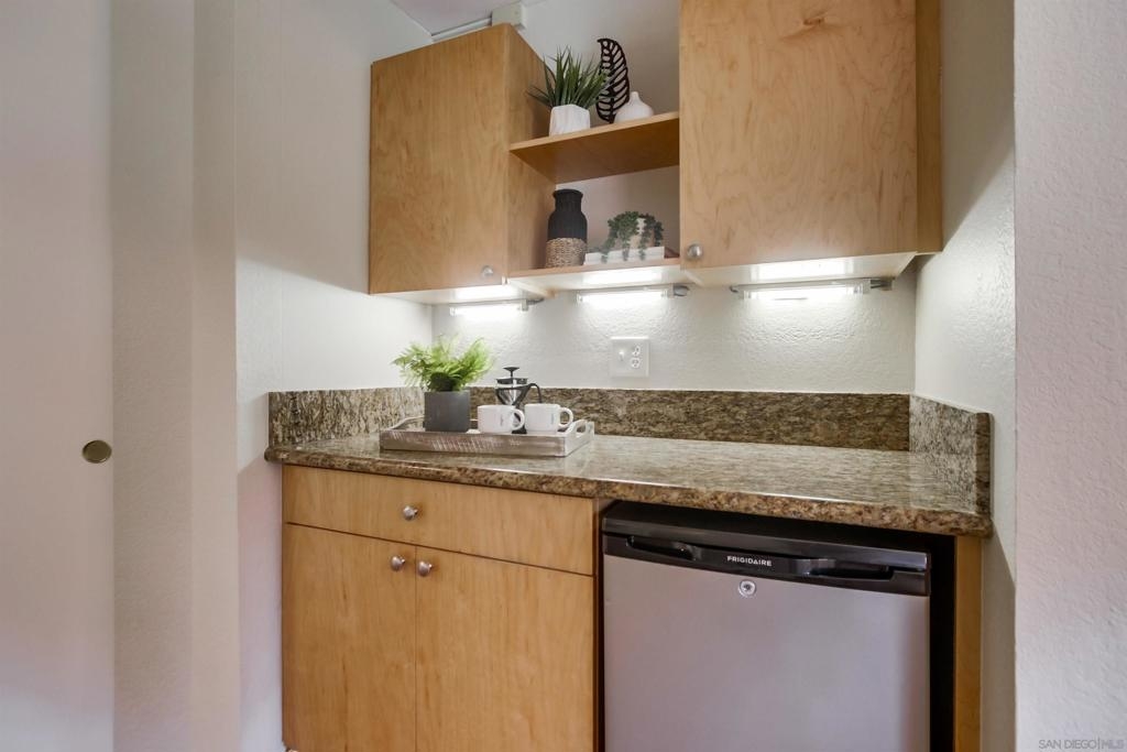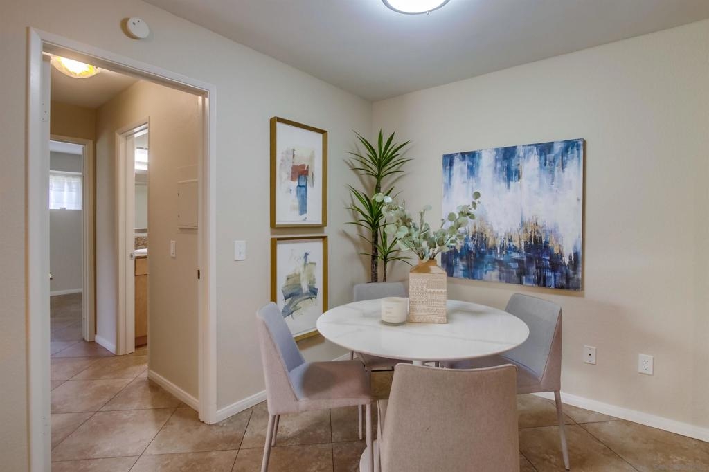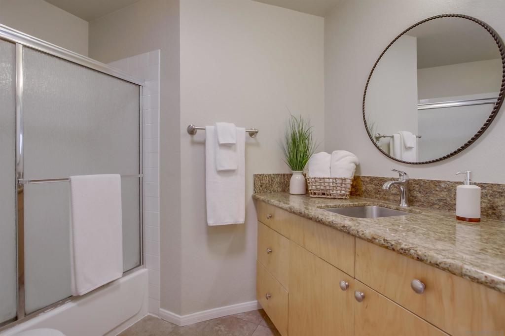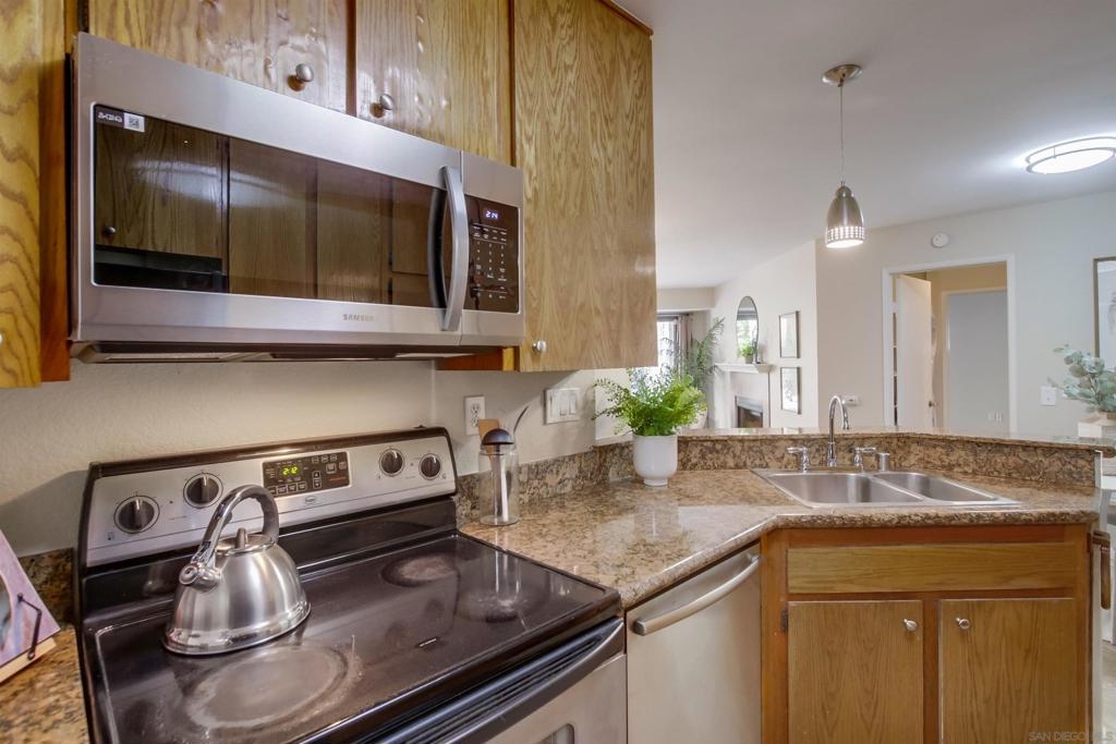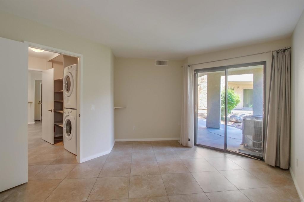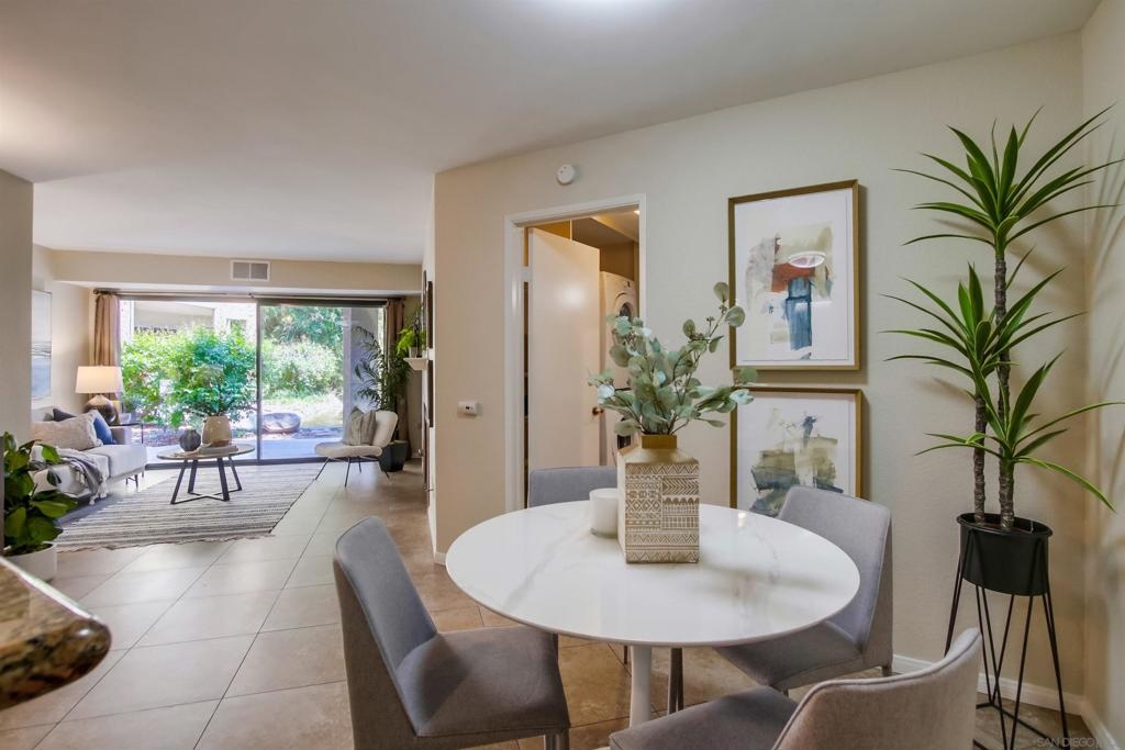 Investors and first time home buyers, check this one out! A true gem for live in or rental possibilities. This first floor corner end unit is private and easily accessed. Featuring an open concept living room & kitchen area with views of your patio and creek, a cozy fireplace, in unit laundry, and a 2 car tandem garage. The bedrooms are set up on opposite sides of the unit, each with private bathrooms, sliding doors to the patio and one has a kitchenette area. Additional upgrades include new paint throughout, durable large tile ceramic flooring, new lighting, stainless steel range and dishwasher, a storage closet, and AC unit. The first floor patio access is great for pets. Creekside is a lovely community, well maintained with a large pool and spa. All located in central San Diego. Walking distance to Miramar College, schools, parks, shops, and restaurants. Easy access to I-15 will get you all over the county, downtown, Miramar, and only 20 minutes to La Jolla beaches.