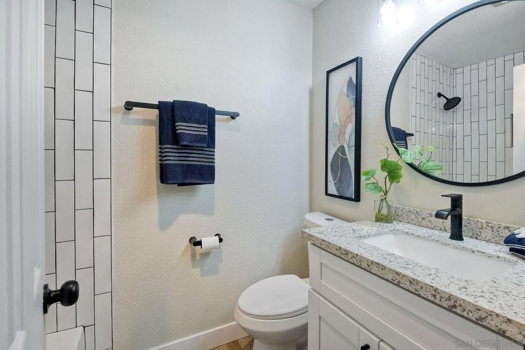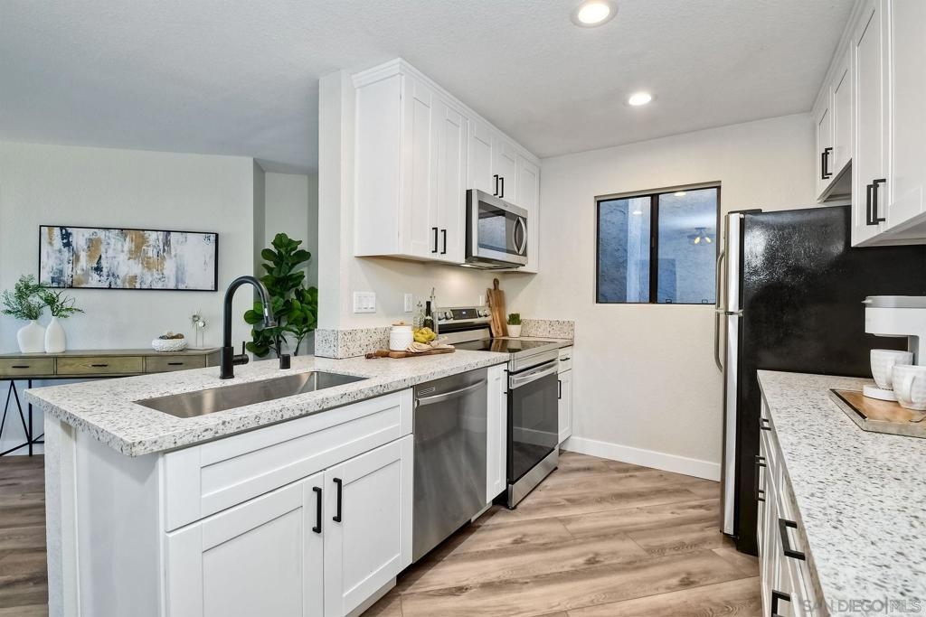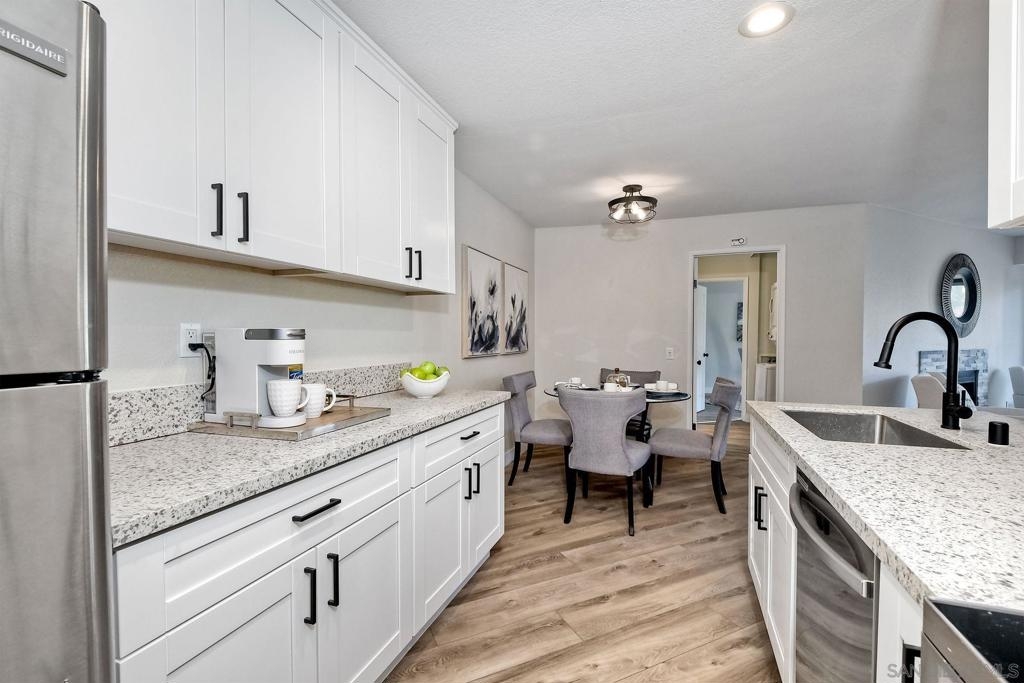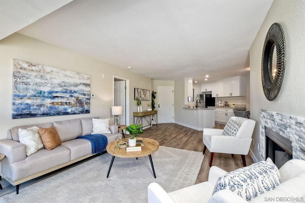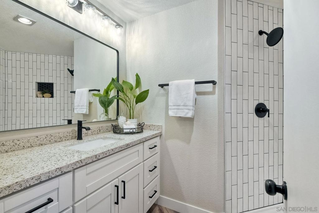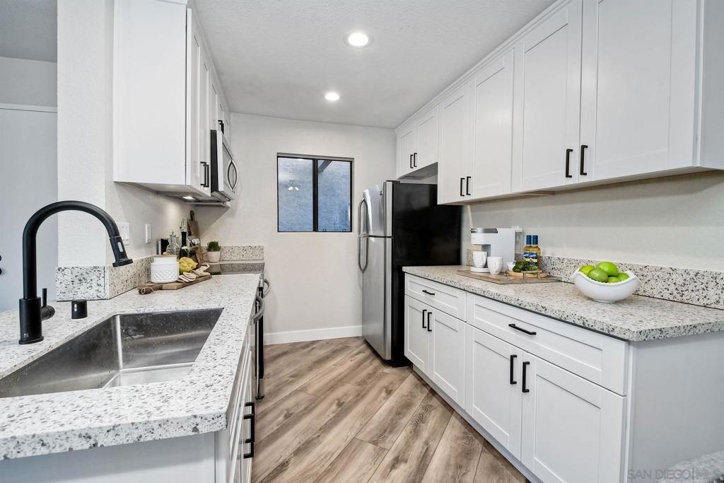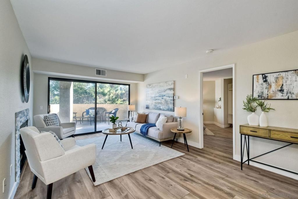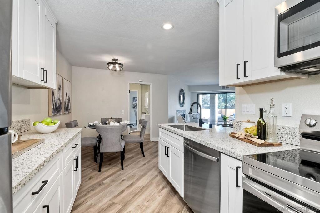 This newly remodeled 2 bd 2 ba condo offers a spacious and inviting living space with just over 1,000 sqft. The brand-new kitchen boasts sleek quartz countertops, stainless steel appliances & ample cabinet space. The generous sized master suite features tons of closet space & an en-suite bathroom. Both bedrooms & the living room have a door to the spacious outdoor patio. Both bathrooms have been tastefully upgraded with gorgeous tiles, quartz countertops, and modern fixtures. Tandem two car garage located close to the unit! Located in Mira Mesa, this condo is close proximity to shopping, dining, entertainment, and top-rated schools. Easy access to major highways ensures a quick commute to other parts of San Diego, making this condo the perfect blend of convenience and lifestyle.