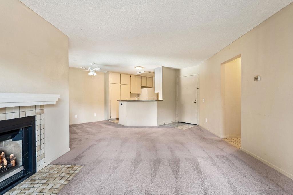 This unit is a blank slate, while still fully livable as is it awaits your finishing touches! Lovely Corner unit, boasting an open functional floor plan. Creating an inviting yet spacious ambiance despite being a one bedroom unit. Located conveniently on the ground level, offering easy access featuring an over sized private patio. The seamless layout connects the kitchen, dining room and living room effortlessly offering a truly homey feel. Unit comes equipped with in unit washer and dryer, a detached 2 car tandem garage and a guest parking space. Residents also gain access to the community pool, spa, dog parking and close proximity to shopping, dinning and freeway on and off ramps! Unit has been priced to leave the owner room to add their own upgrades while still retaining equity !
