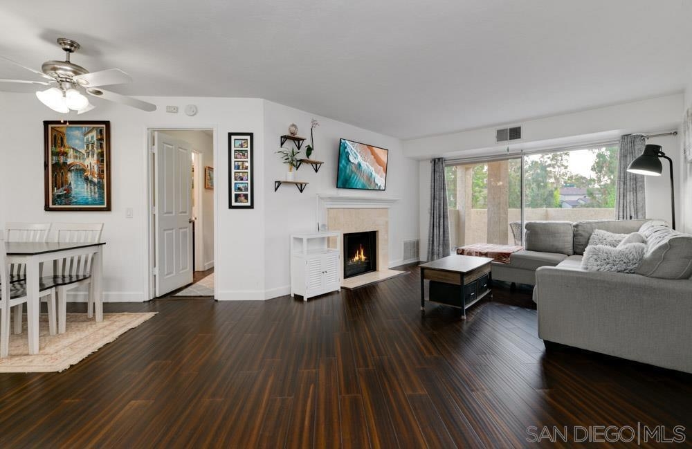 It's Here.. Rare sunny south facing and upgraded 2x2 condo with one of the largest patios in this Mira Mesa community! You will love that this home is packed with tremendous value including an in home washer/dryer, two car garage w/ storage, living room fireplace, dual access to the oversized patio for entertaining your guests and much more. Additional features include a spacious split bedroom and bathroom floor plan with updated quartz countertops and vanities, beautiful hardwood style flooring throughout, an open concept fully equipped kitchen and separate dining area. Enjoy the lush park like community amenities including the pool and spa area, BBQ grilling and dog park. Prime location that neighbors Scripps Ranch, Sorrento Valley, Rancho Penasquitos, Miramar College, Miramar Marine Corp Station plus the convenience of restaurants, shopping and entertainment. Don't miss this opportunity this weekend!