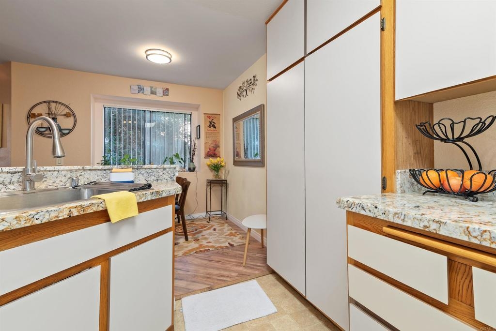 This lovely unit is filled with Zen energy, and serenity. Rocking pond, surrounded with bamboo tree, can be viewed from private patio that are accessible to both bedroom and living room. The unit is well maintained with several new upgrades. It is located conveniently in Mira Mesa community, and recreation center, featuring: Quick and easy access to freeways 15, 163, and 805, quick commute to grocery stores, library, community college, parks, movie theater, restaurants, beach, and mountains. Starbucks are within walking distance. One assigned parking spot plus one parking permit, and many off-street parking. Pool, Spa, and gated dog run area. HOA fee accommodates for upcoming community projects in 2022, including asphalt repairs, termite treatments, ongoing wood maintenance, fire panel upgrades and painting.