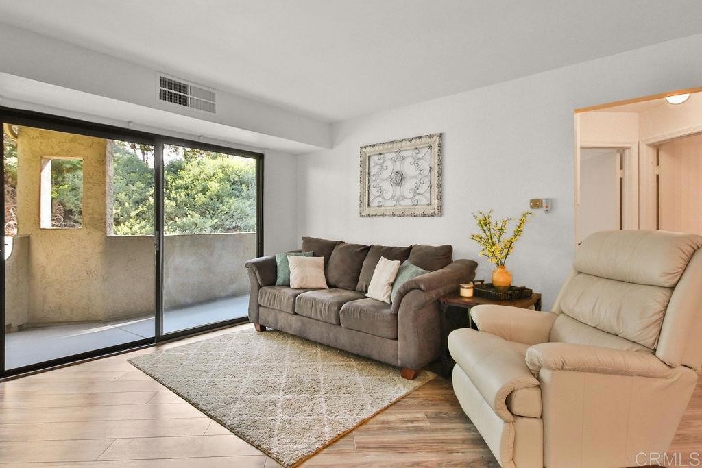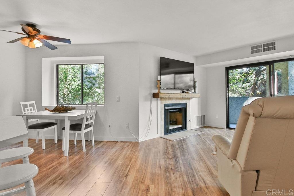 Large 1 bedroom and 1 bath condo with 2 car tandem garage located in the Creekside community of Mira Mesa! Spacious master bedroom, large living area with fireplace, and two parking spaces in the garage. Different than all other units in the complex because of the very secluded private patio/deck that looks out to nothing but landscaping!! This 2nd floor corner unit boasts In-Unit Laundry, Fully remodeled Kitchen with custom Backsplash, new cabinets and dining area. NEW PAINT, NEW FLOORING! Designer looking unit that is in a private location in complex. This Pet Friendly complex offers tranquil waterfalls, lush landscaping, relaxing KOI Ponds, a Community Pool, 2 Spas, BBQ's, a Dog Park and has close freeway access. HOA even covers water! Close freeway access. HOA Don't wait, check out the VIRTUAL TOUR today and make this your new home! Seller will Entertain Offers between $279000 - $299000.
