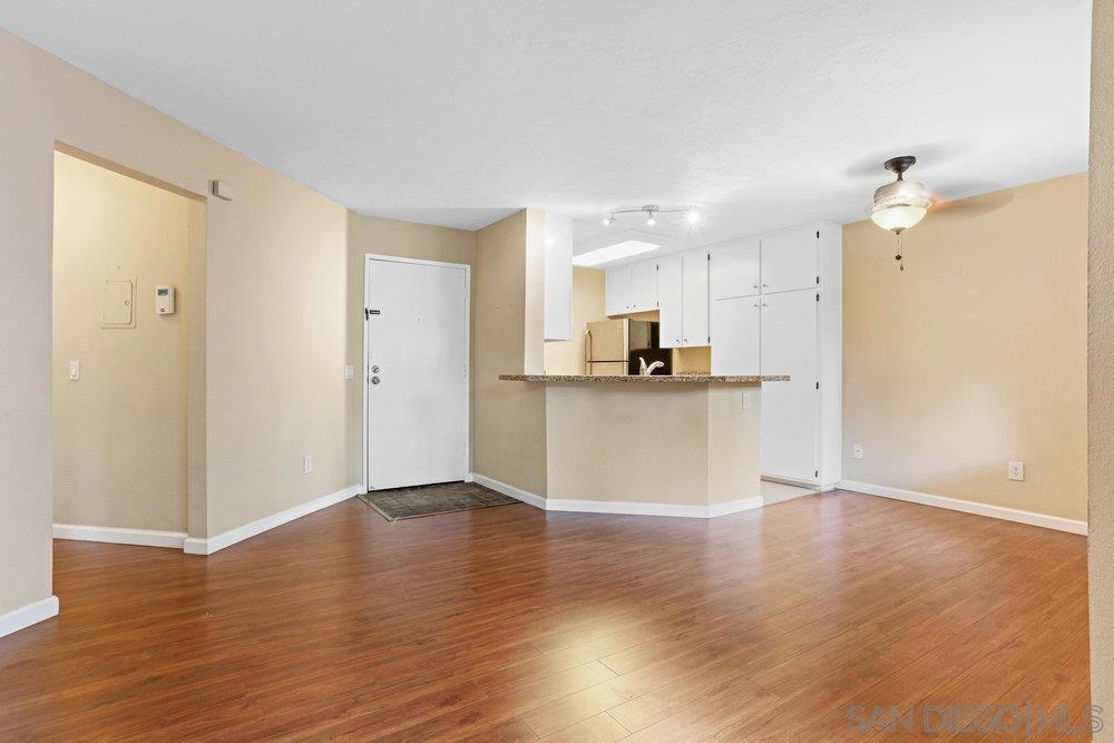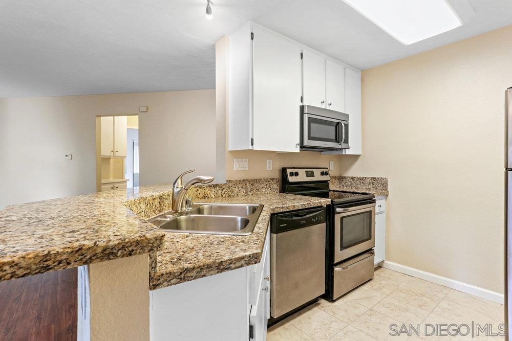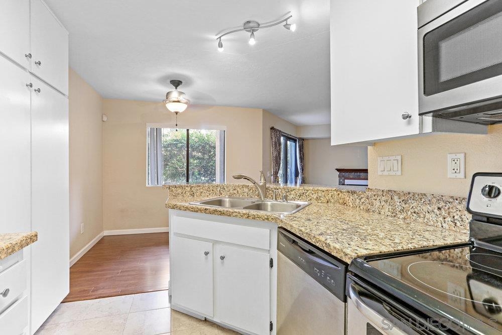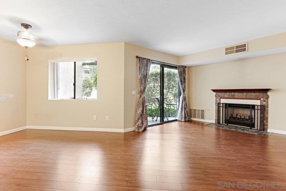 Now is the best opportunity to buy this charming first floor condo in the heart of Mira Mesa. Located in the tranquil community of Creekside surrounded with water fountains and pond, this property features an open floor plan, beautiful laminate wood floors, living room with cozy fireplace, open kitchen with upgraded stainless steel appliances, granite counters and lots of cabinets. Also enjoy the newer water heater (1 year) ceiling fan, inside laundry, large bedroom with plenty of closet space and private covered patio overlooking the pool. Take advantage of everything this beautiful complex has to offer with great amenities and easy access to 15 Freeway. VA approved complex. Water and Sewer included in HOA fee. Complex Features: , Equipment: Dryer, Range/Oven, Washer Sewer: Sewer Connected Topography: LL