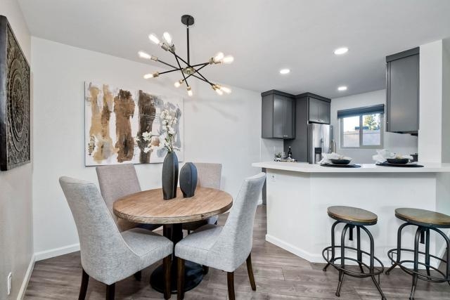 Welcome to this beautifully upgraded move-in ready 2BR 2BA condo w/ detached 2-car tandem garage, featuring luxury vinyl plank flooring, spacious living room w/ a fireplace, remodeled kitchen w/ stainless steel appliances & quartz countertops, a remodeled bathrooms w/ quartz countertops & tile floors. The master bathroom boasts a large remodeled shower, upgraded vanity w/ quartz counters. Contemporary light fixtures & ceiling fans add a modern touch. Other amenities include stacked washer & dryer in unit, mirrored door closets, a spacious patio accessed thru sliding doors. Dual pane windows & doors enhance energy efficiency. The community offers a pool, spa, & a dog run. Conveniently located near shopping, dining, and freeways. It’s a wonderful place to call home! Beautifully upgraded move-in ready 2BR 2BA condo w/ detached 2-car tandem garage, featuring luxury vinyl plank flooring, spacious living room w/ a fireplace, remodeled kitchen w/ stainless steel appliances & quartz countertops, a remodeled bathrooms w/ quartz countertops & tile floors. The master bathroom boasts a large remodeled shower, upgraded vanity w/ quartz counters. Contemporary light fixtures & ceiling fans add a modern touch. Other amenities include stacked washer & dryer in unit, mirrored door closets, a spacious patio accessed thru sliding doors. Dual pane windows & doors enhance energy efficiency. The community offers a pool, spa, & a dog run. Conveniently located near shopping, dining, and freeways. It’s a wonderful place to call home!