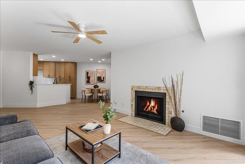 Step into your private oasis in Mira Mesa conveniently located next to the 15 freeway and Scripps Ranch. Surrounded by koi ponds, mature trees, and tranquil water features, this beautifully renovated top floor Creekside condo blends peaceful living with everyday convenience. Inside, every detail has been thoughtfully updated. The open layout features brand new flooring, fresh interior paint, and a new central AC system for year-round comfort. The inviting living room centers around a cozy fireplace and flows seamlessly to a private patio, perfect for morning coffee or evening relaxation. The kitchen is equipped with brand new appliances, sleek quartz countertops, and generous cabinet space, making both daily meals and entertaining a breeze. The primary suite is spacious and boasts a stylishly updated bathroom. The second bedroom and bath offer flexibility for guests, a home office, or additional living space. Brand new in-unit laundry and two car tandem garage add everyday ease. The Creekside community offers resort-style amenities including a sparkling pool, spa, and peaceful walking paths surrounded by lush landscaping. The location is unbeatable, walking distance to grocery stores, restaurants/bars, coffee shops, parks, and top-rated schools. Convenient freeway access to I-15 and I-805 makes commuting simple, and several major military bases are located nearby. This home is VA-approved and move-in ready, offering a rare opportunity to own a fully updated property in one of Mira Mesa’s most desirable communities. Nothing like this comes to market often. Schedule your tour today and experience the Creekside lifestyle for yourself!