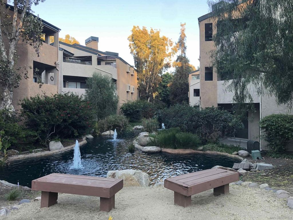 Cozy and remodeled 2 bed/2bath with private tandem garage. Sparkling granite counters in kitchen and both bathrooms, recessed lighting, and wood-like ceramic tile flooring throughout. This corner ground-level unit provides owner privacy along with a spacious outdoor patio surrounded by trees and water fountains. Newer SS appliances, stacked in-unit washer/dryer. Complex has pool, 2 spas, BBQ area and a dog run. Minutes from I-15 and Mira Mesa shops, SD Miramar College, restaurants, bars and more! **Broker and Broker's agents do not represent or guarantee accuracy of the square footage, permitted or un-permitted space, bed/bath count, lot size/dimensions, schools, or other information concerning the conditions or features of the property. Buyer is advised to independently verify the accuracy of all information through personal inspection and with appropriate professionals to satisfy themselves.** Equipment: Dryer,Garage Door Opener, Range/Oven, Washer Sewer: Sewer Connected Topography: GSL