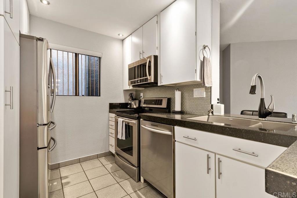 Fabulous condo meticulously maintained 2-bed, 2-bath and 2-car garage. Kitchen cabinets all updated with stainless appliances featuring induction stovetop and convection oven, granite counters and pantry with slide out drawers. Extra-large balcony both covered and uncovered areas with sliding doors off Living room and both bedrooms, LED lighting throughout and patio lights with touch dimmers. Bathrooms feature crushed quartz counters, illuminated tub lights and, master bathroom vent fan features Bluetooth speaker and nightlight. Air conditioner and furnace less than 6 years old with top of the line York furnace and Daiken A/C, stackable washer and dryer, bladeless ceiling fan w/LED light in the living room, ring video doorbell, Kwickset Kevo smart home bolt lock.