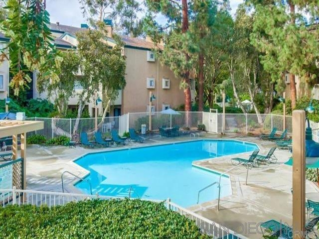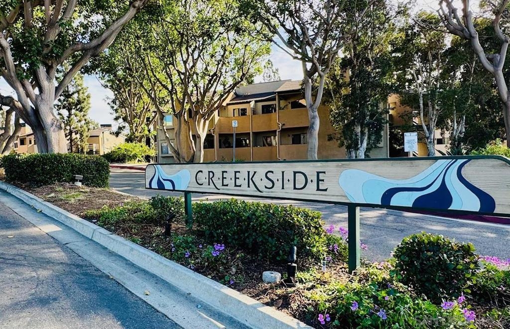 Seller is willing to help with buyer's closing costs or buy down. Fantastic Creekside condo featuring a top floor, end unit location. Parking for the unit includes a 37' deep 2-car tandem garage (G2) and a permit for an open parking space on first come basis. The unit has newer flooring, a stacked washer/dryer, central AC and a huge patio area. The floor-plans functions well as two primary bedroom and bath units. Super quiet location. Beautiful project landscaping and amenities. The building has been tented recently. All appliances convey.