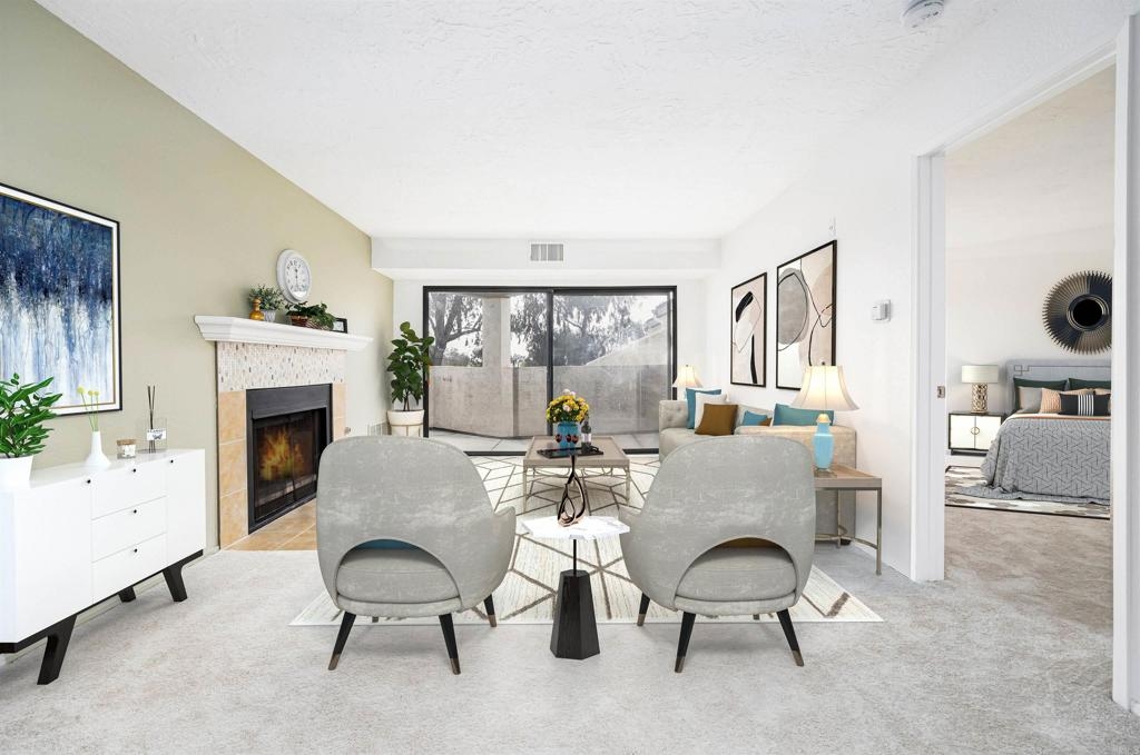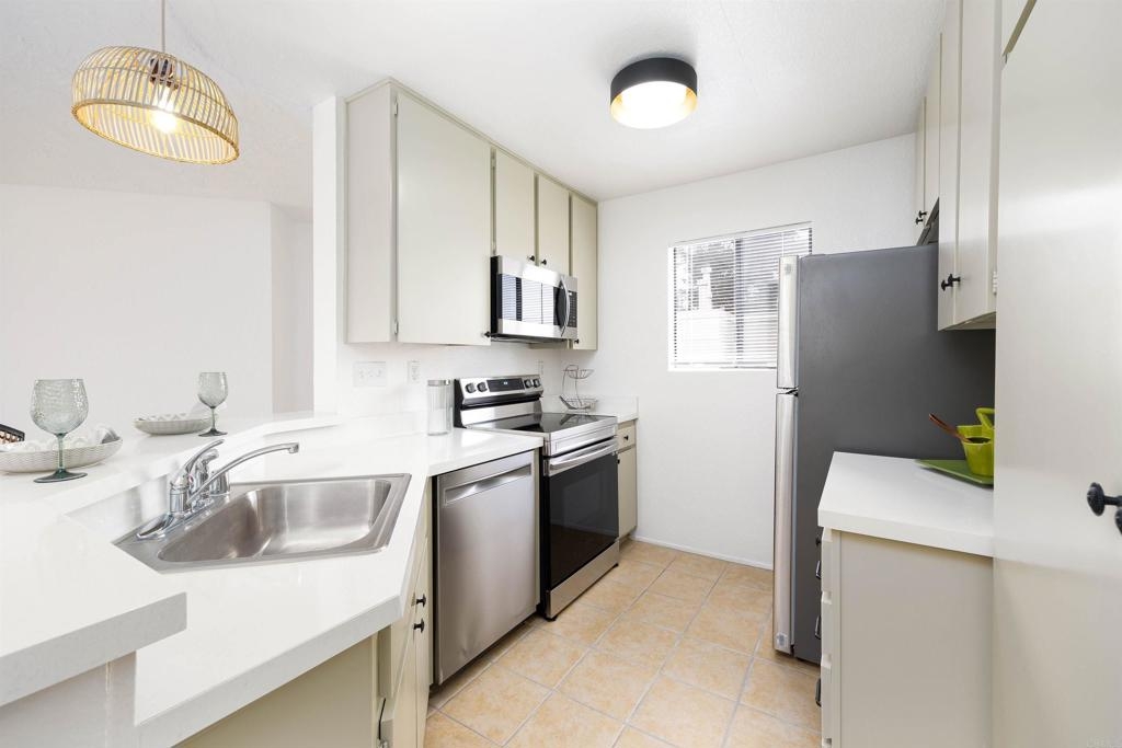 Newly remodeled, bright two-bedroom two-bathroom top floor condo includes a two car garage with one extra parking permit and a community dog park. Recent upgrades include: all new stainless kitchen appliances, hot water heater, carpet and paint. Step inside the open concept living area with a gas fireplace and access to the extra-large balcony which spans the width of the unit. This home has a split bedroom floor plan separated by the living room and each bedroom has their own access to the balcony. This home also features a in-unit washer and dryer. The two car tandem garage is detached with plenty of storage space plus one extra parking permit. Within close proximity to the 15 freeway, shopping, restaurants and just minutes from Lake Miramar in Scripps Ranch. This pet friendly community is also VA and FHA approved and the HOA dues include water, sewer and trash, pool, two spas, off leash dog park and BBQ area. The grounds are well kept and feature several water features and a koi pond.