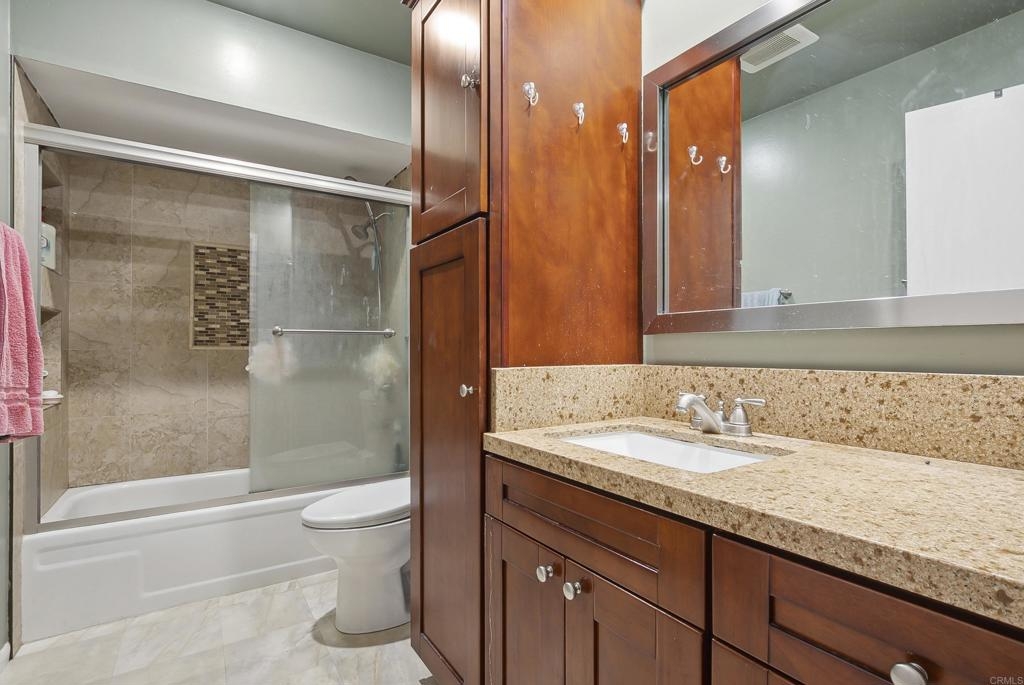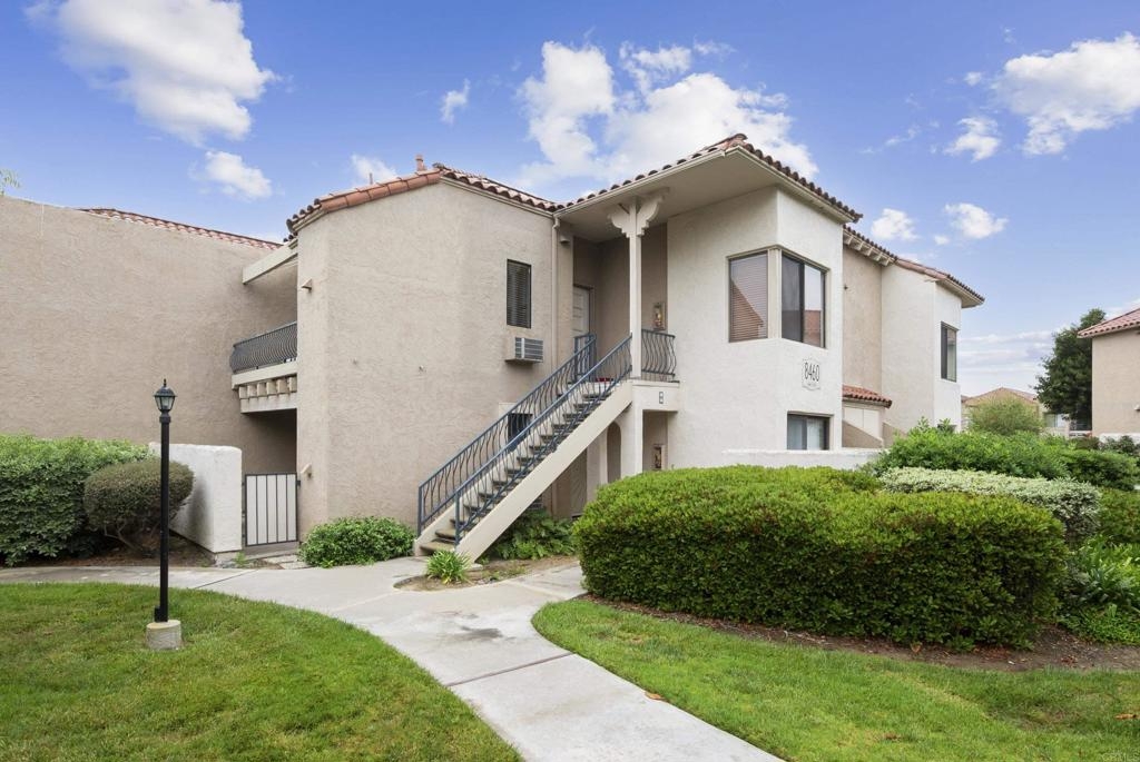 Fantastic opportunity in Mira Mesa. Lowest priced unit in the entire zip code! This charming well finished 1 bed 1 bath unit in The Flair Condominiums is perfect for everyone! Upstair unit, no one above you! It features granite tops, newer tiles and upgraded cabinets in the large bathroom. Tastefully painted, Good size bedroom with small nook for an office desk right by the windows. Granite tops and recessed lights in the kitchen. Fan in the living room and AC unit for those warm summer nights. Large balcony with dedicated washer dryer! 1 assigned parking space and plenty of guest parking. This one is the one you have been looking for!