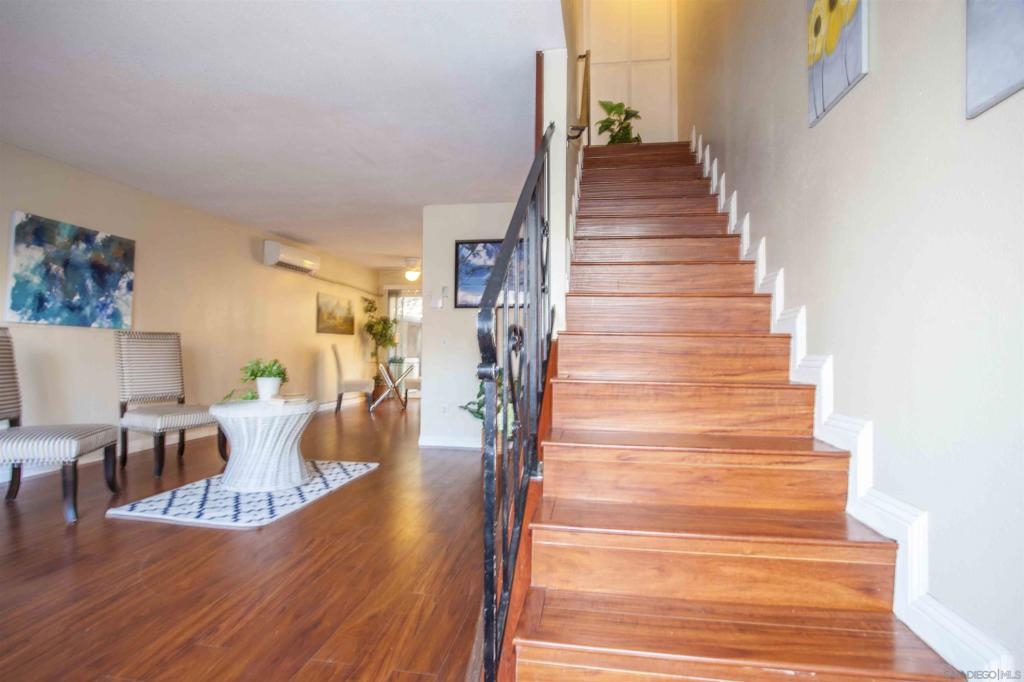 Price reduction 8/26! Spacious 2 story townhome in the desirable Gold Creek Community in Mira Mesa. Move-in ready! Home features: Updated kitchen and bathrooms with granite counter tops. Laminate flooring, tiles in bathrooms. 2 Balconies off each bedroom, and a private patio off the kitchen. In unit laundry closet. Seller pay $30/month addition to HOA fee for 2nd parking space Community pool nearby. Centrally located, close to great shopping, restaurants,Hourglass Field Community Park. Easy access I-15! Equipment: Dryer, Washer