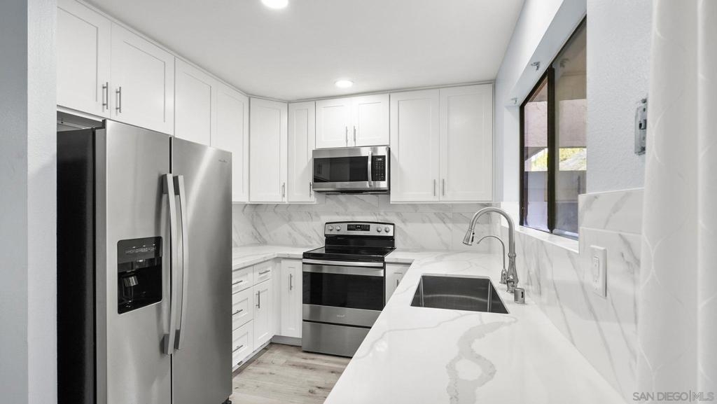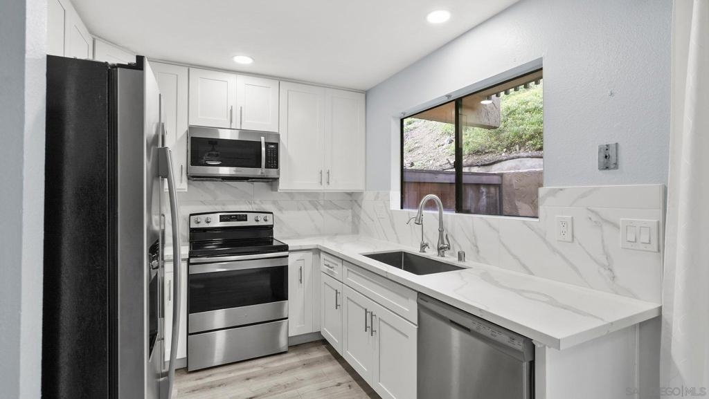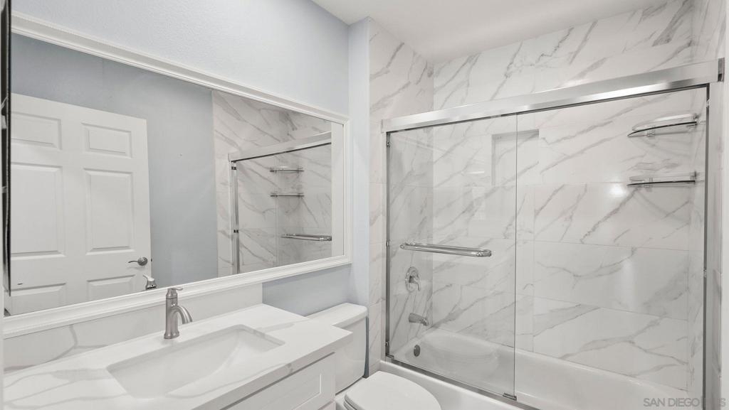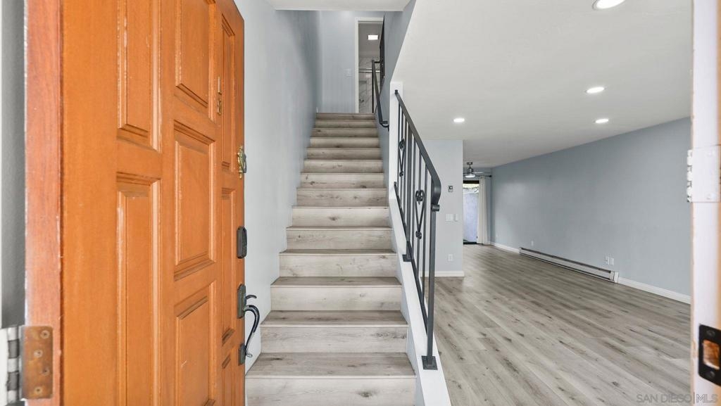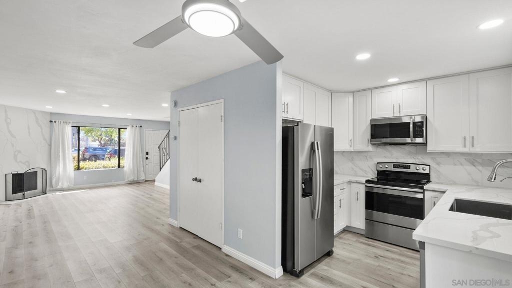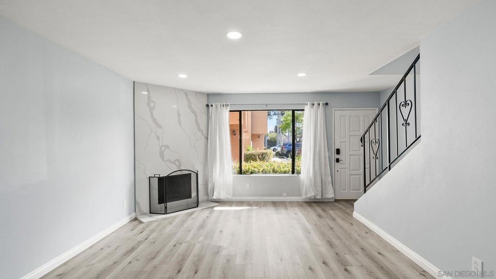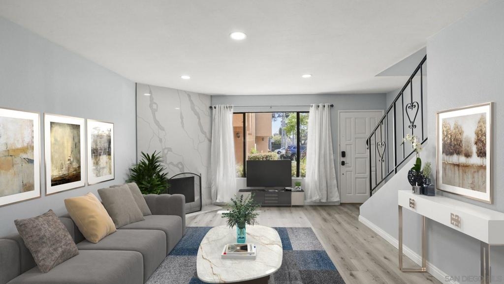 RARELY ON MARKET 3 BEDROOM townhome in the heart of Mira Mesa! This move-in ready, fully remodeled corner unit offers the perfect blend of comfort, style and convenience featuring an open living room with cozy fireplace, an upgraded kitchen with quartz countertops & stainless-steel appliances, IN-UNIT laundry equipped w washer/ dryer & two assigned parking spaces. On the second level you will find 3 generously proportioned bedrooms each with built-in lighting and reach in closets. Enjoy multiple outdoor retreats including a large private patio for entertaining and two balconies off the primary bedrooms, perfect for morning coffee or evening relaxation. This 2-story gem is situated in the highly desirable gold creek community! Complex features 2 large community swimming pools, is conveniently located next to Hourglass park & within minutes to Miramar College, restaurants, shopping and I-15 freeway!