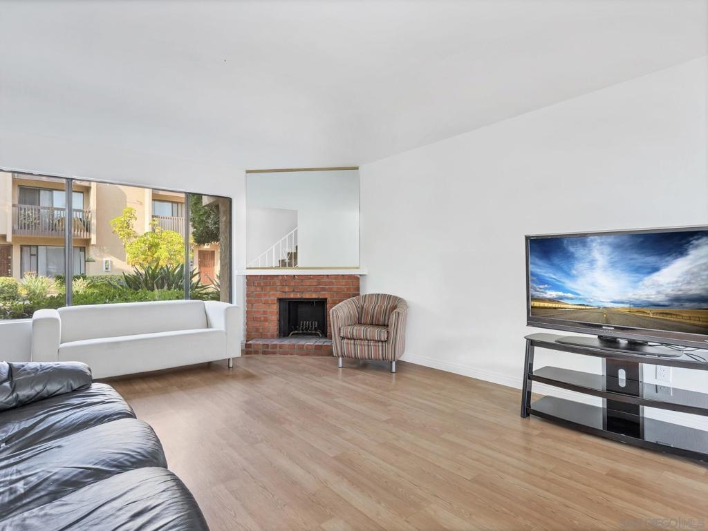 Quiet and bright home with laminate flooring, new kitchen counter tops and new appliances, spacious living room with fireplace and a large patio. Two upstairs specious bedrooms offer sliding doors opening to big balconies, nice closet space and some views. Option of laundry in closet indoor or in patio outside. Unit comes with one reserved parking. Current owner is renting a second parking spot for $30 a month. Easy access to shops, restaurants and freeway. Other Fees: 0 Sewer: Sewer Connected Topography: LL