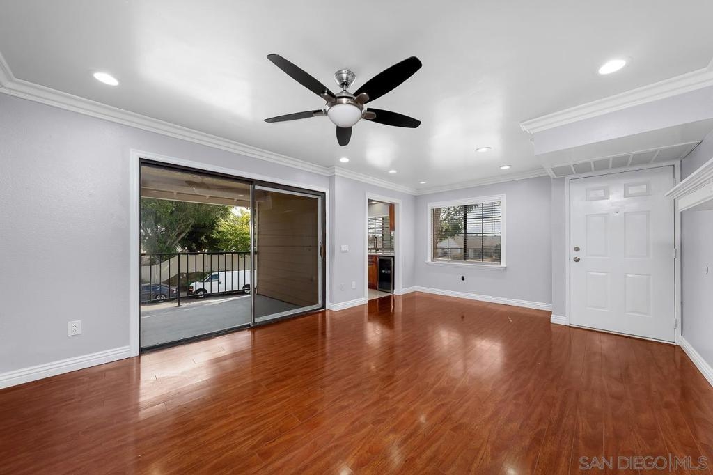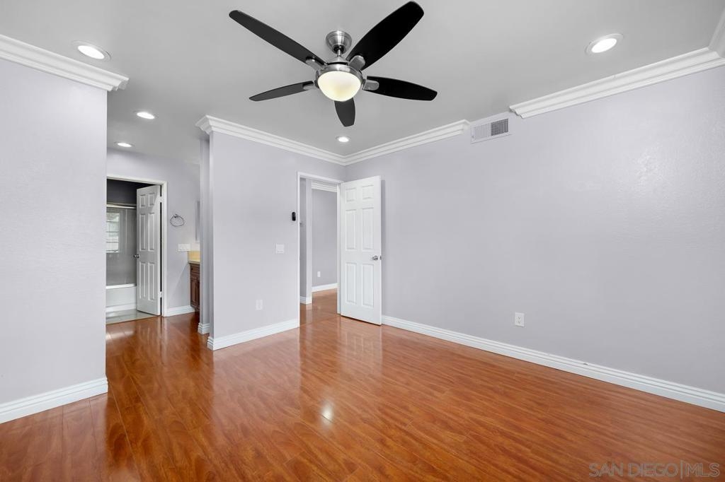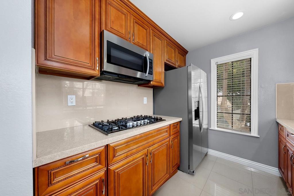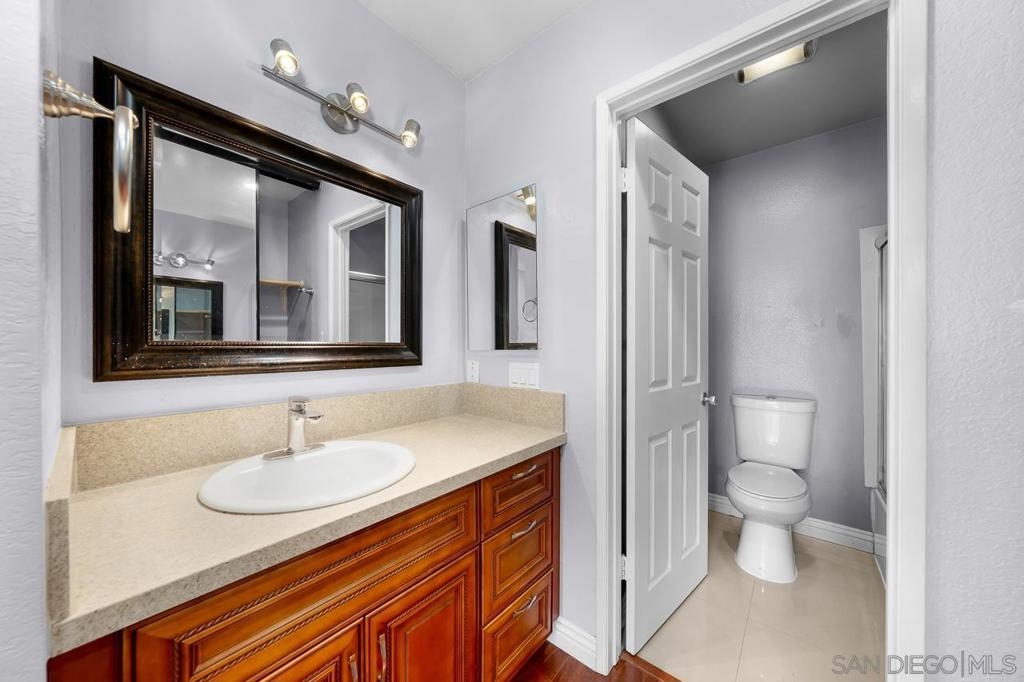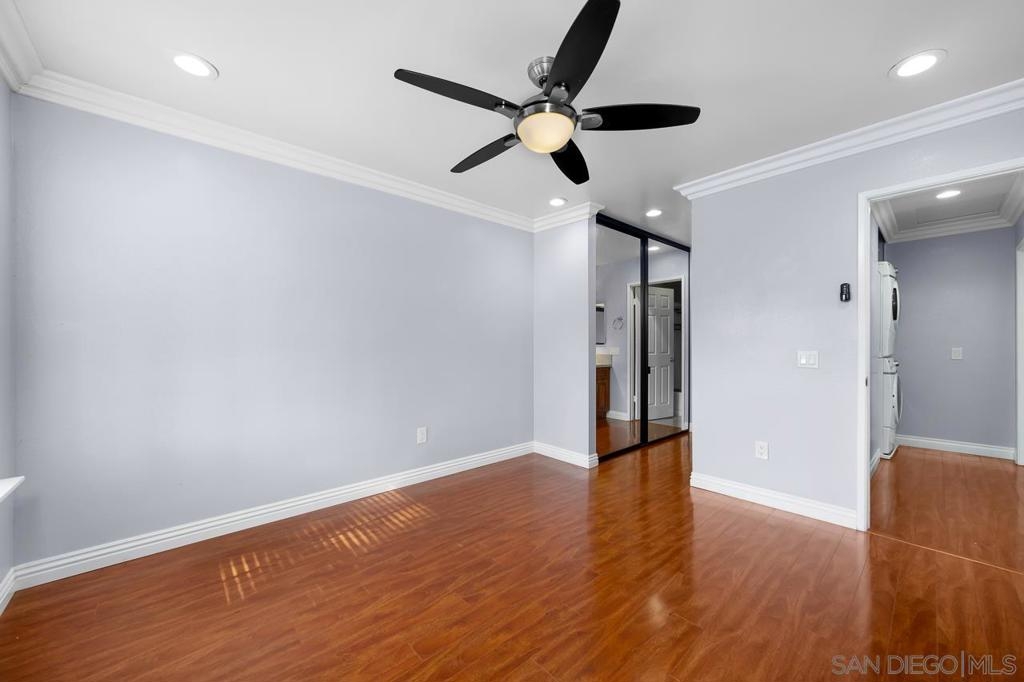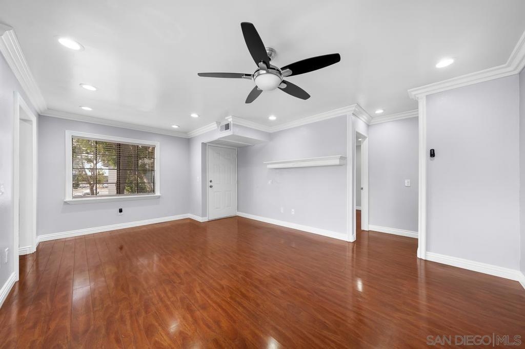 Welcome to this inviting 920 square feet 2 bedroom 2 bathroom condo in the heart of Mira Mesa. Rich vinyl flooring that flows throughout, leading you to a sleek galley kitchen with quartz countertops and tile flooring. Both ensuite bedrooms offer privacy and comfort, while the spacious, sunlit living room opens onto a serene balcony—perfect for unwinding. With a stackable washer and dryer for added convenience, this home combines functionality with style. The open condominium complex offers a pool and spa, and the location is unbeatable: just a short walk to Mira Mesa Park and minutes from shops, restaurants, and entertainment, including Trader Joe's, In-N-Out, and Regal Edwards Mira Mesa. Experience the best of Mira Mesa living in this beautifully designed home!