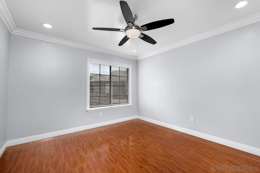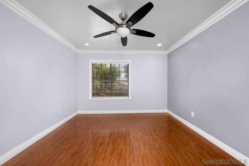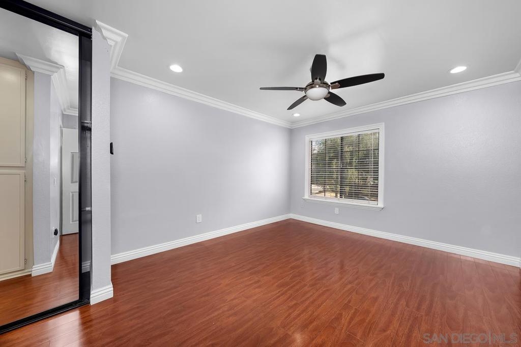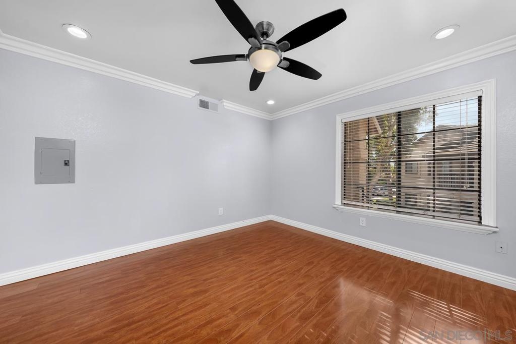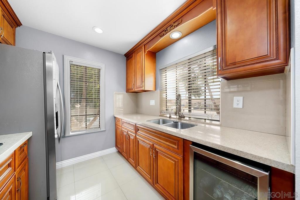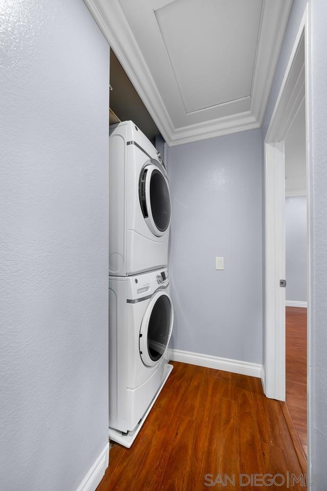 Welcome to this inviting 920 square feet 2 bedroom 2 bathroom condo in the heart of Mira Mesa. Rich vinyl flooring that flows throughout, leading you to a sleek galley kitchen with quartz countertops and tile flooring. Both ensuite bedrooms offer privacy and comfort, while the spacious, sunlit living room opens onto a serene balcony—perfect for unwinding. With a stackable washer and dryer for added convenience, this home combines functionality with style. The open condominium complex offers a pool and spa, and the location is unbeatable: just a short walk to Mira Mesa Park and minutes from shops, restaurants, and entertainment, including Trader Joe's, In-N-Out, and Regal Edwards Mira Mesa. Experience the best of Mira Mesa living in this beautifully designed home!