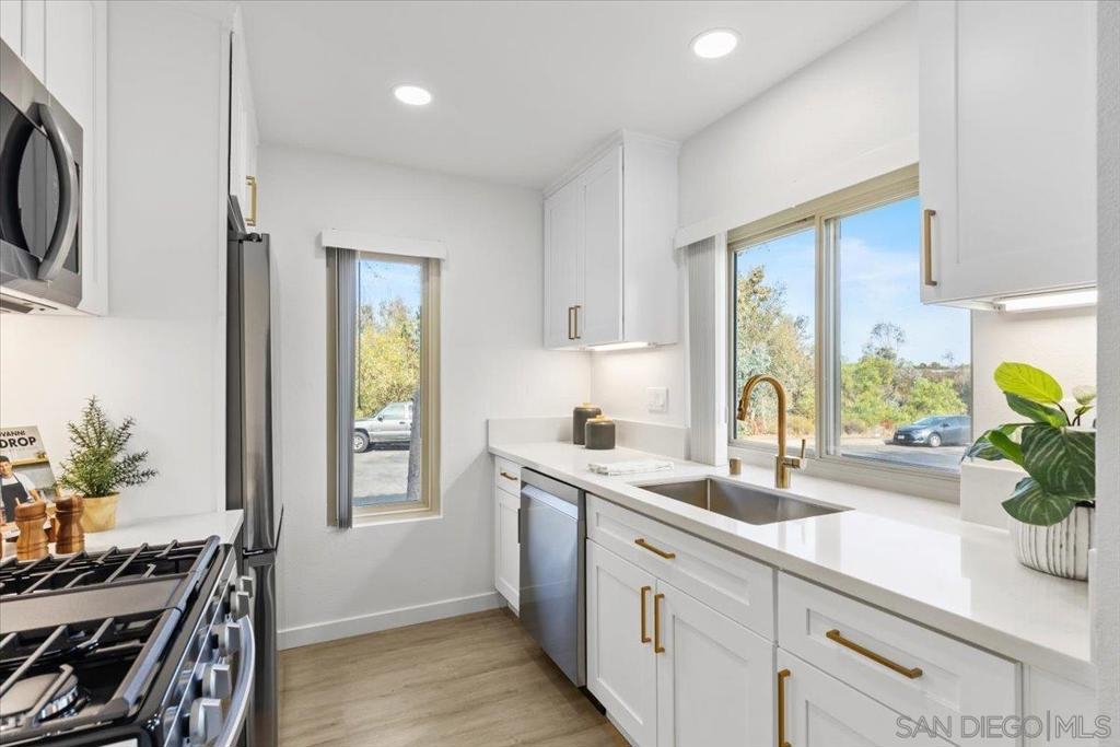 This centrally located Mira Mesa condo has all the upgrades you’re looking for! Extensive remodel including a full kitchen with new stainless appliances, upgraded flooring throughout, brand new bathrooms with custom tile work, new cabinets, fireplace for cozying up, and an ample patio for a quiet retreat or extended dining. Desirable end unit along a peaceful tree lined street. This home has dual primary suites, 1 assigned parking space and ample street parking for guests. Come see!