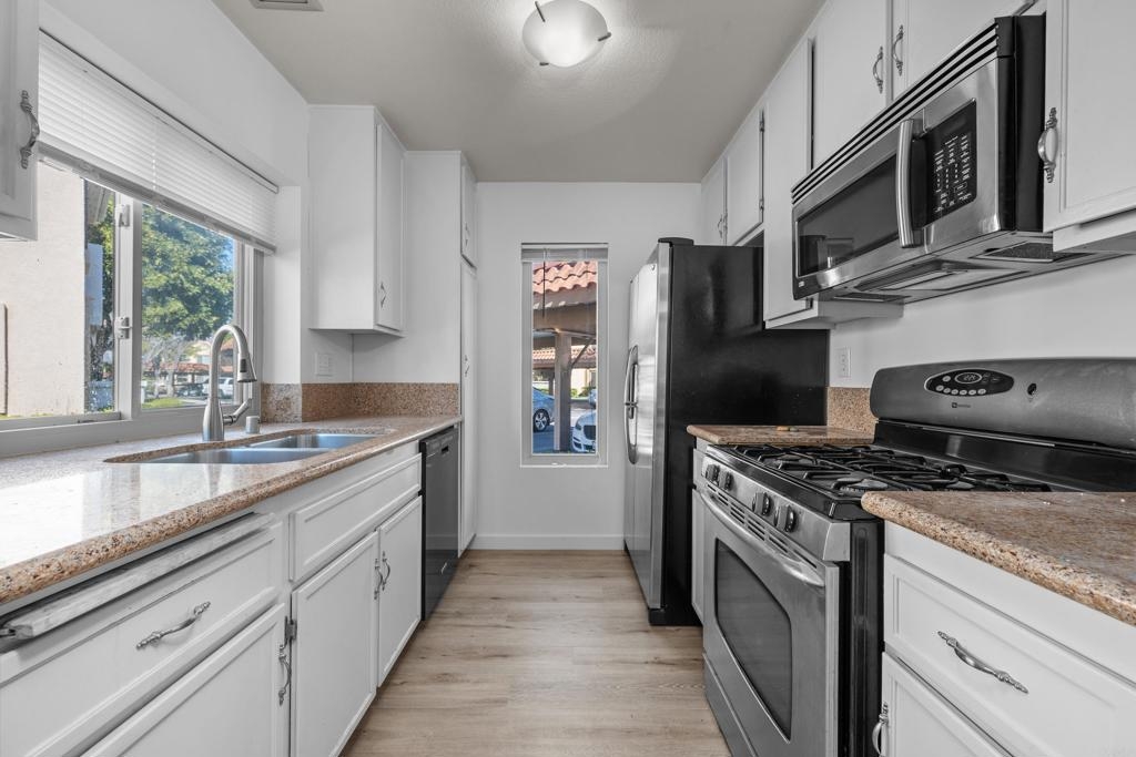 This lovely updated ground level condo is move in ready. This property features 1 bedroom, 1 bath, designated parking conveniently located near condo, in unit laundry and lots of storage. Brand new floors and paint, custom bathroom cabinetry stands out compared to similar units. Comparatively lower HOA. Located near shops and high rated schools! Must see to appreciate.