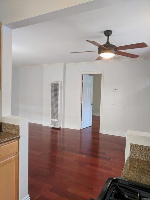 Reduced price ! Great first time buyer or investment property. Come see this one bedroom, one bath condo that's move in ready. Check out the beautiful Santos Mahogany engineered hard wood floors, Plantation shutters, crown molding, and neutral paint throughout. Kitchen includes maple toned cabinetry, granite counter tops, and tile flooring. From the living room there's a slider with plantation shutters to access your patio. It's been well maintained, all appliances convey including washer, dryer, water heater is 5 years new and new toilet. This condo complex includes a fitness center, pool and jacuzzi. Located in a Mira Mesa neighborhood that's close to everything - great schools, shops, restaurants, easy freeway access and within proximity to the Miramar Base. LOWER HOA than most complexes in the area = big savings!. Water and Trash paid by HOA as well. Check this out you won't be disappointed!