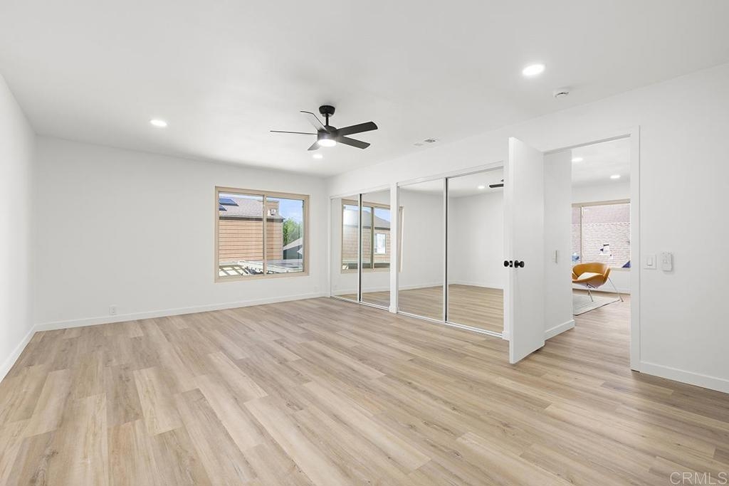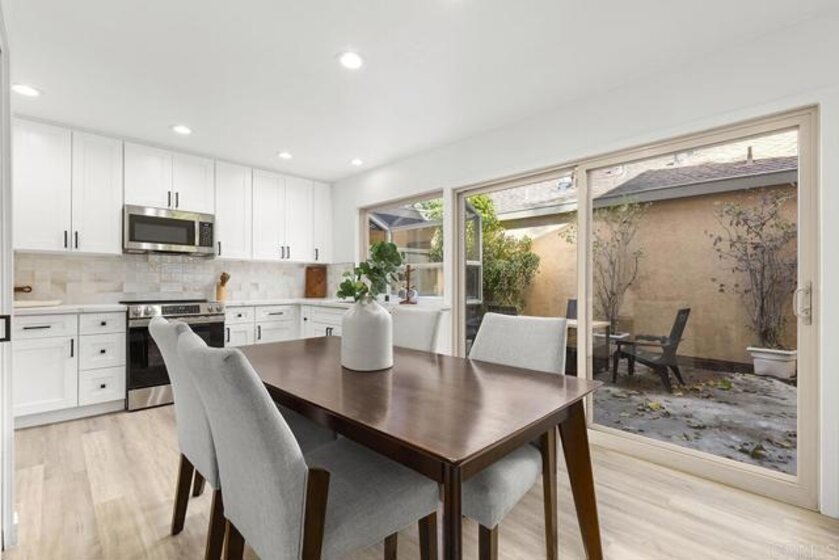 Welcome Home! This turn-key condo is located in the park-like setting of Mira Mesa Village. There is a view of the greenbelt from the living room. The charming property has just undergone an extensive remodel, featuring new kitchen and bath cabinets, brand-new stainless-steel appliances, and quartz countertops. This is a lovely two-story 3-bed 2-bath property with an open floor plan, freshly painted, and new plank flooring throughout. Private patio off the kitchen/dining area. Washer/Dryer off the kitchen. Two bedrooms/full bath on the first floor. Upstairs, a large bedroom/a full bath, and an open room for a study/den/extra living room. MUST SEE!! Low HOA, No Mello Roos. Conveniently located near the parks, schools, shopping, dining & freeway access. Complex amenities include: rec room, pool, and spa. LOCATION, LOCATION, LOCATION.