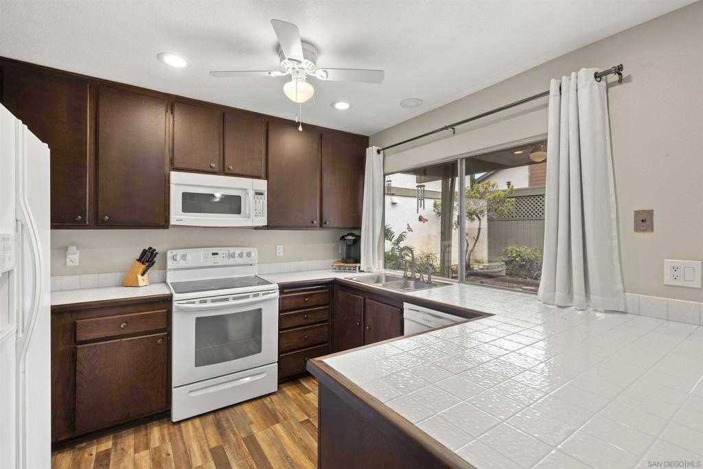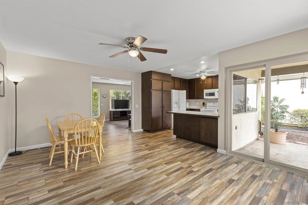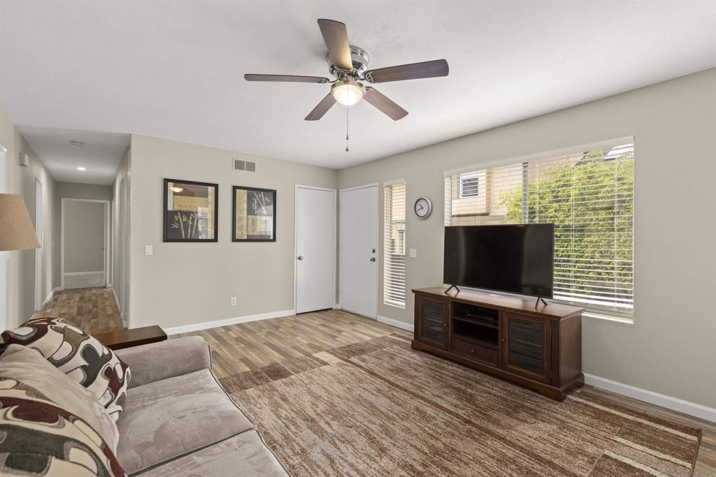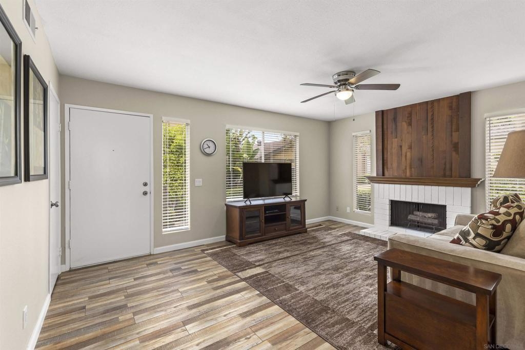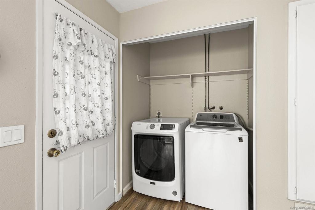 Charming Mesa Village property that lives like a home with no shared walls. 2 vehicle carport with direct access to unit and storage area. A private backyard and patio great for entertaining. Steps to large open green space with parking for guests. Excellent condition with vinyl flooring and designer paint. New full-size washer & dryer included. Large primary bedroom and bathroom suite. A well-maintained complex with two pools and lots of green space.