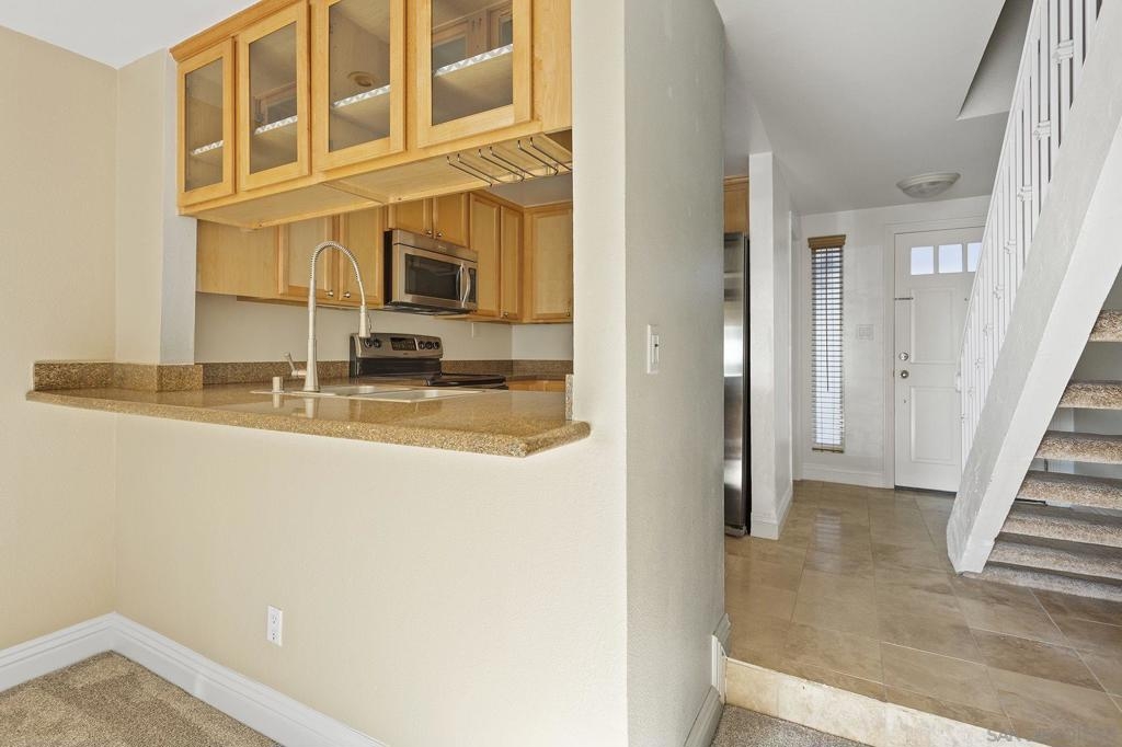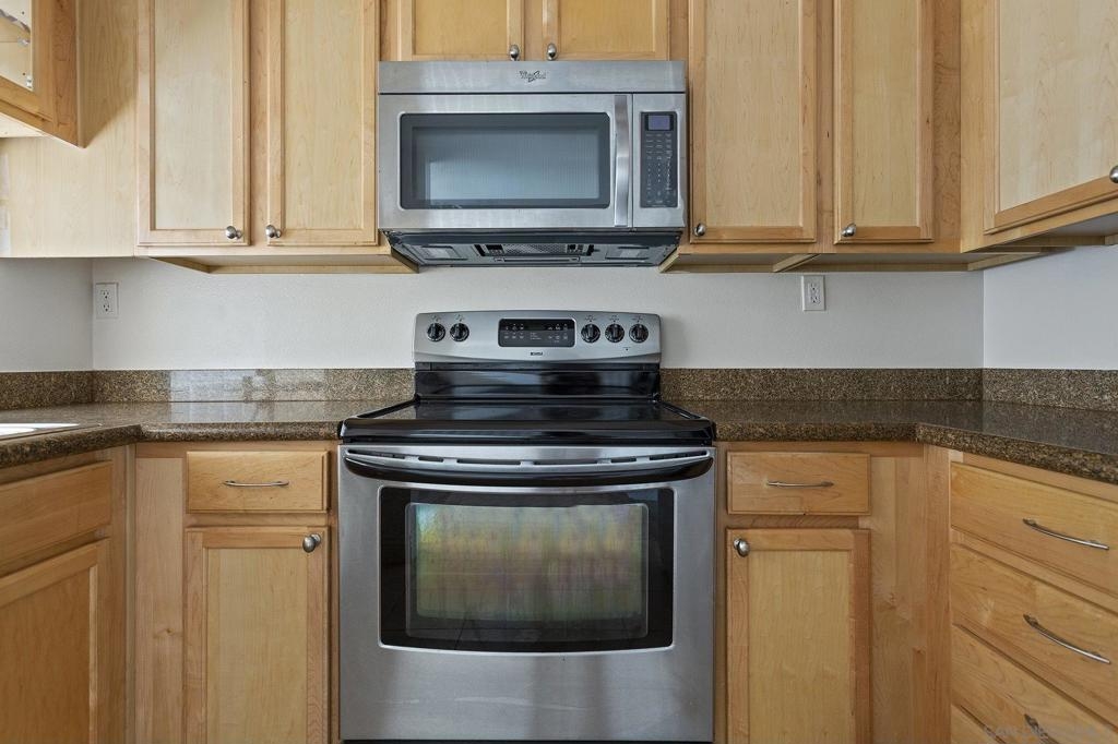 Modern 2 story, townhome-like condo in Windsor park with patios on both floors. Enjoy open concept living & dining areas with an upgraded kitchen, including stainless steel appliances and granite counters. Located upstairs are two spacious bedrooms with room for a large desk and home office, a full bathroom, and a brand new washer & dryer. This community has one of the lowest HOA fees in the area and features a well maintained pool and walking areas. This is a very quiet, bright unit located just seconds to I-15, and only minutes to MCAS Miramar, hourglass community park, restaurants, fitness centers, theaters, shopping and much more. FHA Eligible/VA Approved. Equipment: Dryer, Range/Oven, Washer Sewer: Sewer Connected