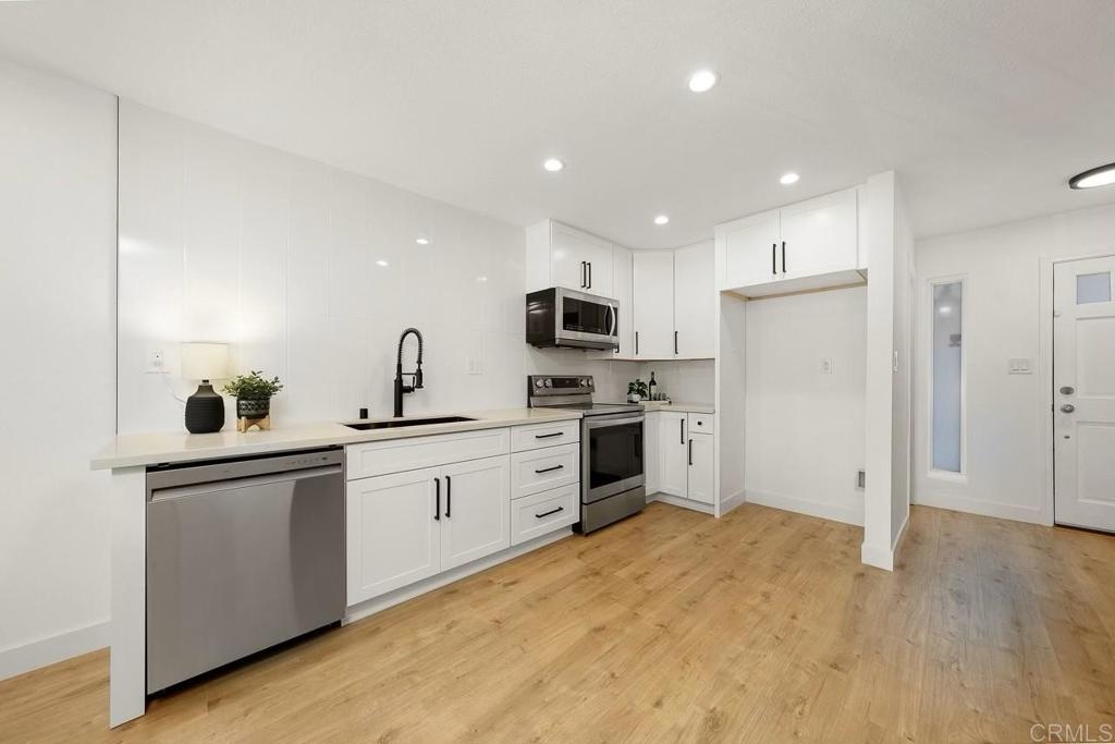Discover urban living at its best in this remodeled 2-bedroom townhouse located in a prime central location. This rarely available end unit with open-concept living area is flooded with natural light, an upgraded kitchen, walkout patio and half bath downstairs creating an inviting space for relaxation or entertaining guests. Upstairs, you'll find two spacious bedrooms, one full bath, laundry and an additional charming patio providing a private outdoor retreat. This unit comes with two designated parking spaces, and the complex includes amenities such as a pool and exercise room. Located just moments away from Miramar, Schools, shops, restaurants, and entertainment options, this townhouse offers the ultimate urban lifestyle. Whether you're looking for a cozy home or a smart investment opportunity, don't miss out on this chance to experience city living at its finest.