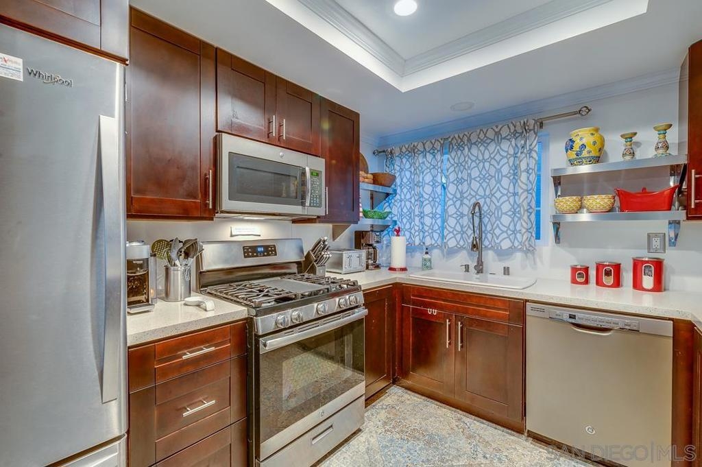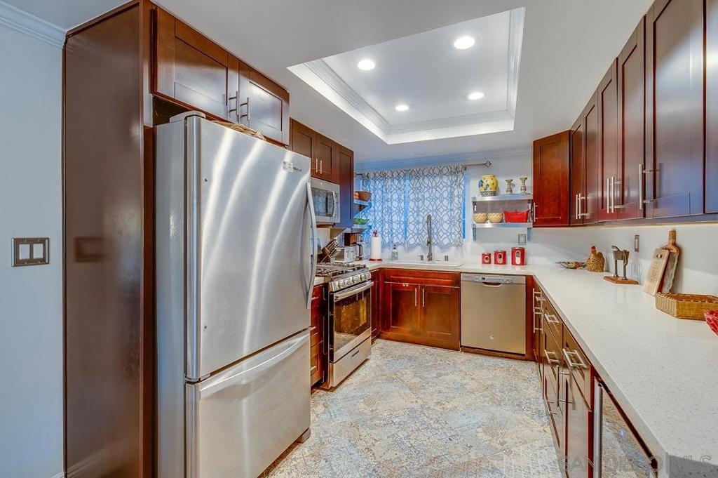 Recently remodeled townhome in the highly sought-after Canyon Colony community! Peacefully situated in the heart of Mira Mesa, this immaculate 3 bed 3 bath home stands at the apex of quality & style w/ its highly upgraded luxurious but comfortable interior. Just off the entryway, find a main-level 3rd bedroom, upgraded full bath, a spacious living room w/ an elegant fireplace, & a glass door to a serene patio. Lots of, newer dual-pane windows allow natural light to flood in! Dream kitchen exudes modern style, equipped w/ white quartz countertops w/ a waterfall-edge, upgraded cabinetry & state of the art appliances. Open to the kitchen & living room, the light-filled dining room w/ large windows is an ideal place for entertaining loved ones. The stairway leads you to the generously sized owner's suite w/ large windows & remodeled master BA w/ dual vanities, dual closets, walk-in shower, and private balcony. Upstairs complete w/ a secondary guest bedroom, upgraded bath, and laundry. Attached 2 car garage. Equipment: Dryer,Garage Door Opener, Range/Oven, Washer Sewer: Sewer Connected Topography: LL